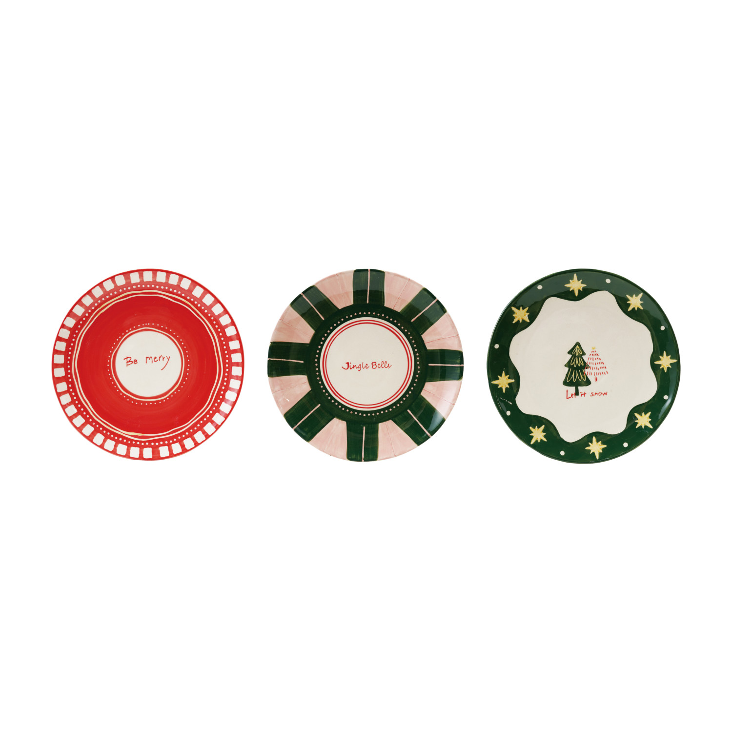 Hand-Painted Stoneware Plate with Holiday Design, 3 Styles