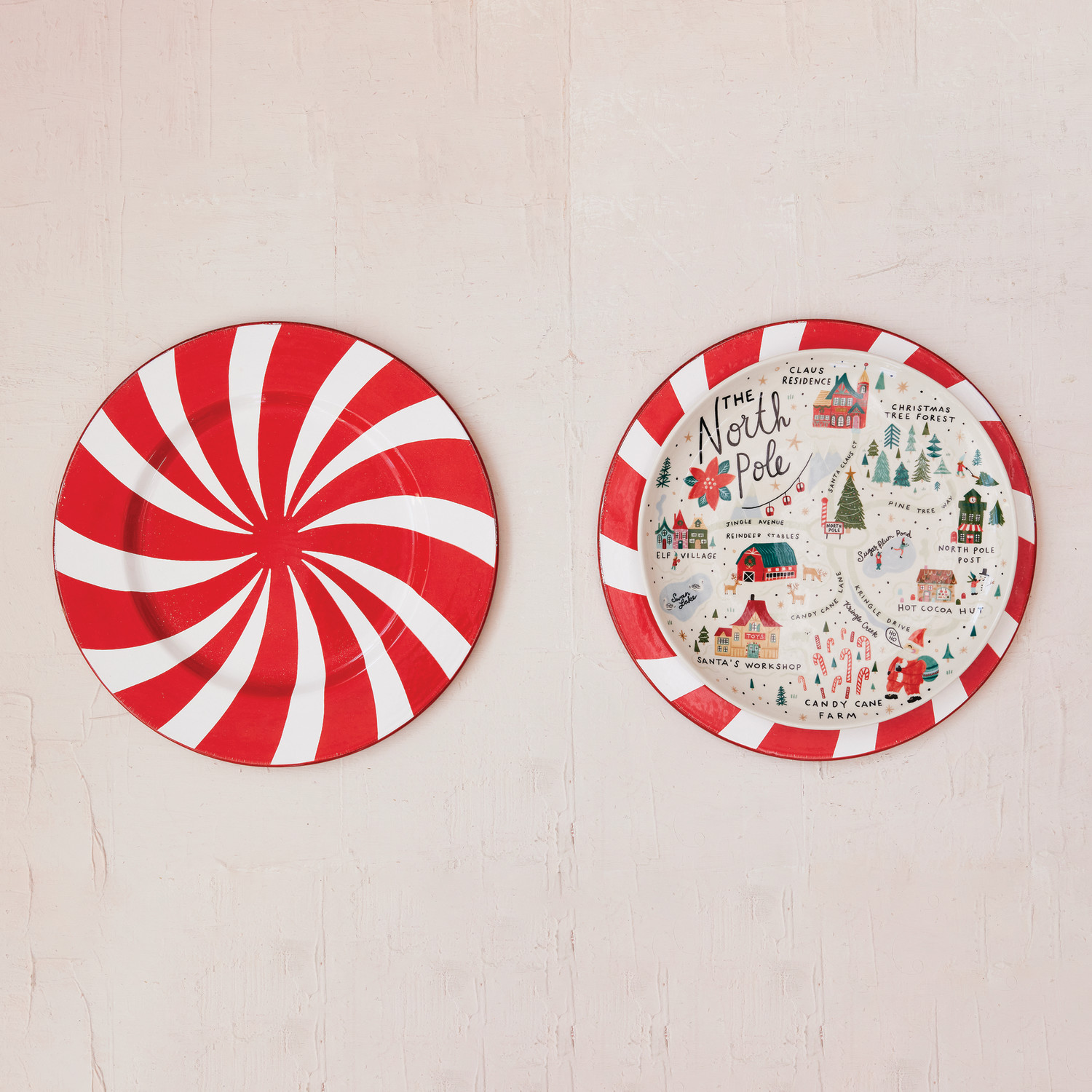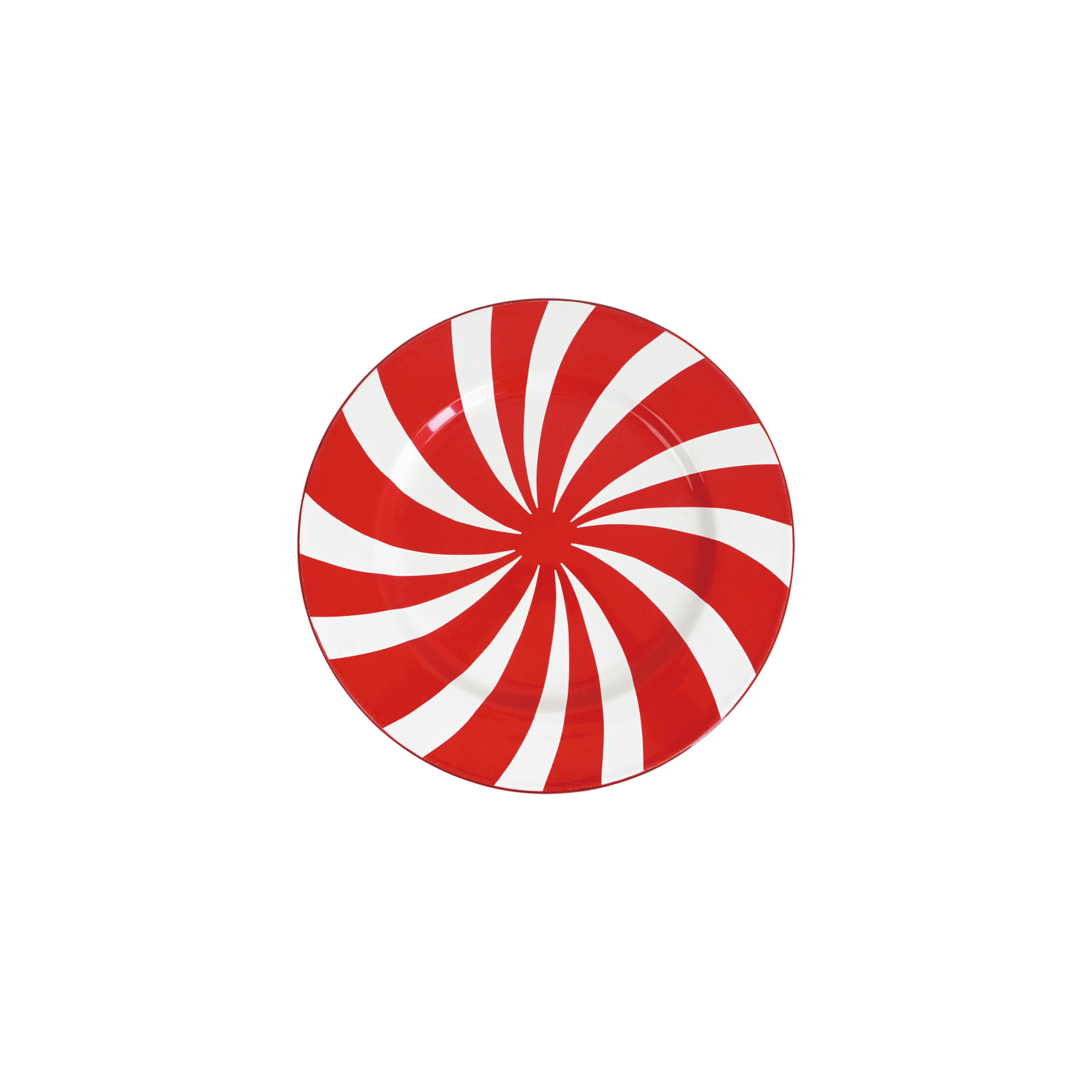 Catalog Name: 13" Round Enameled Metal Plate/Charger w/ Swirled Stripes, Red & White