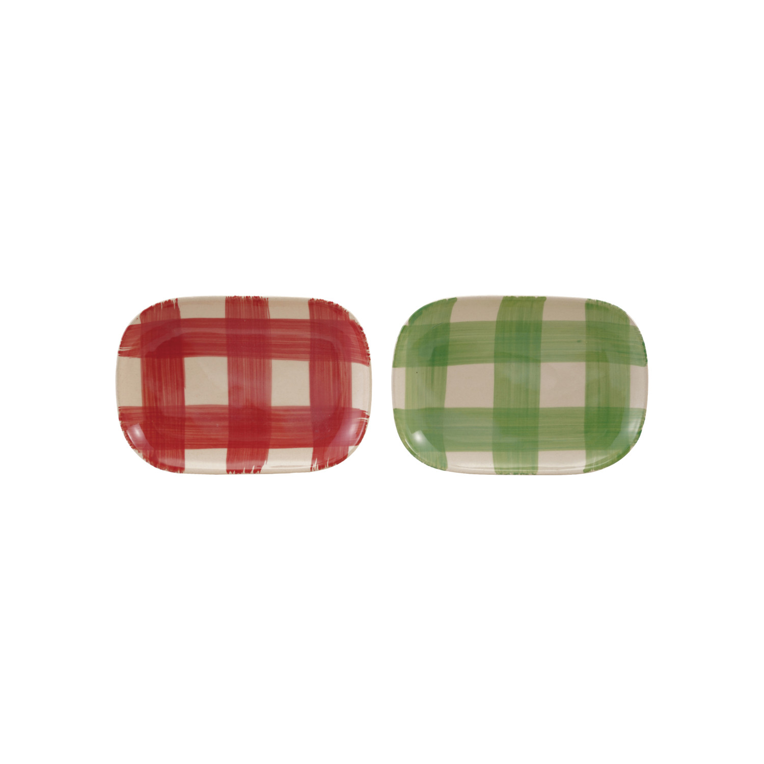 Catalog Name: 6"L x 4"W Hand-Painted Stoneware Plate w/ Plaid Pattern, 2 Colors (Each One Will Vary)
