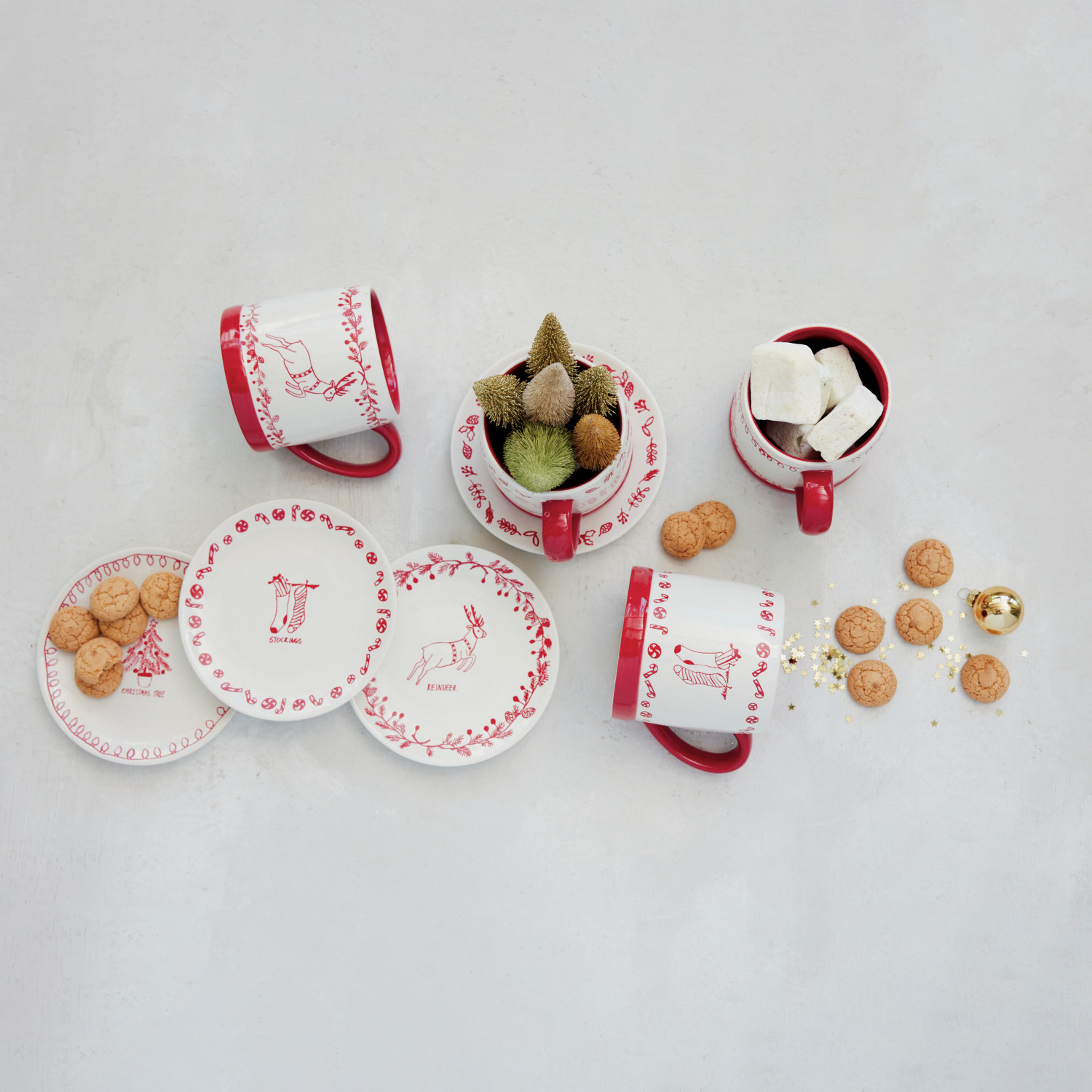 Catalog Name: 6" Round Stoneware Plate w/ Holiday Design, Icon & Word, White & Red, 4 Styles