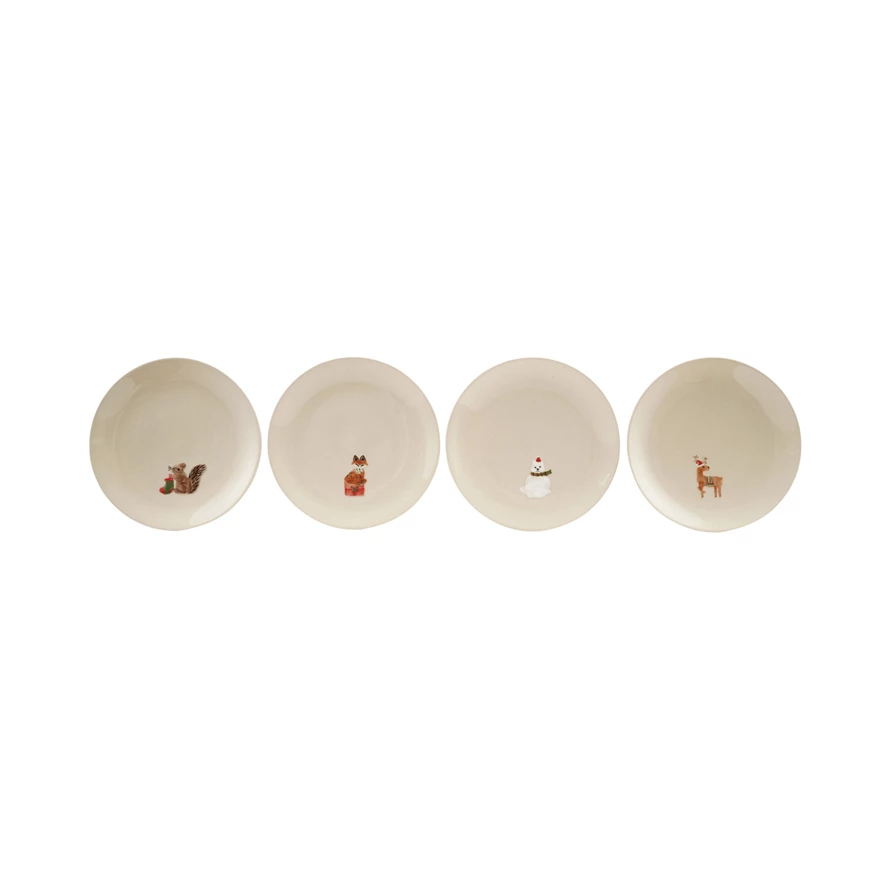 Hand-Painted Embossed Stoneware Plate with Holiday Animal, 4 Styles