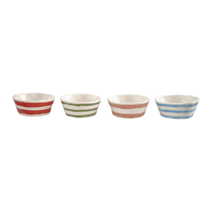 Catalog Name: 5" Round x 2"H Hand-Painted Stoneware Striped Bowl, 4 Styles