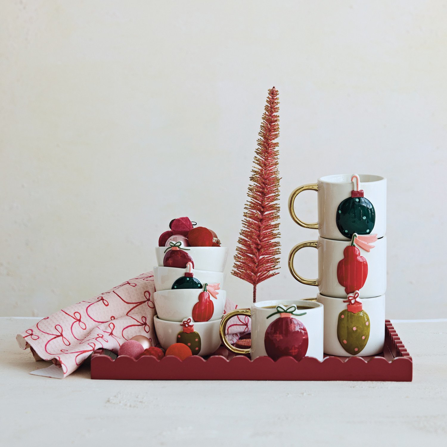 Hand-Painted Stoneware Bowl with 3D Ornament, 4 Styles ©