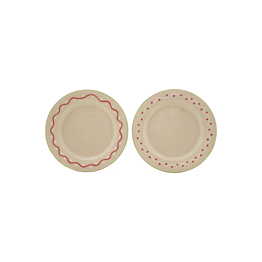 Hand-Painted Stoneware Plate with Design & Colored Edge, 2 Styles