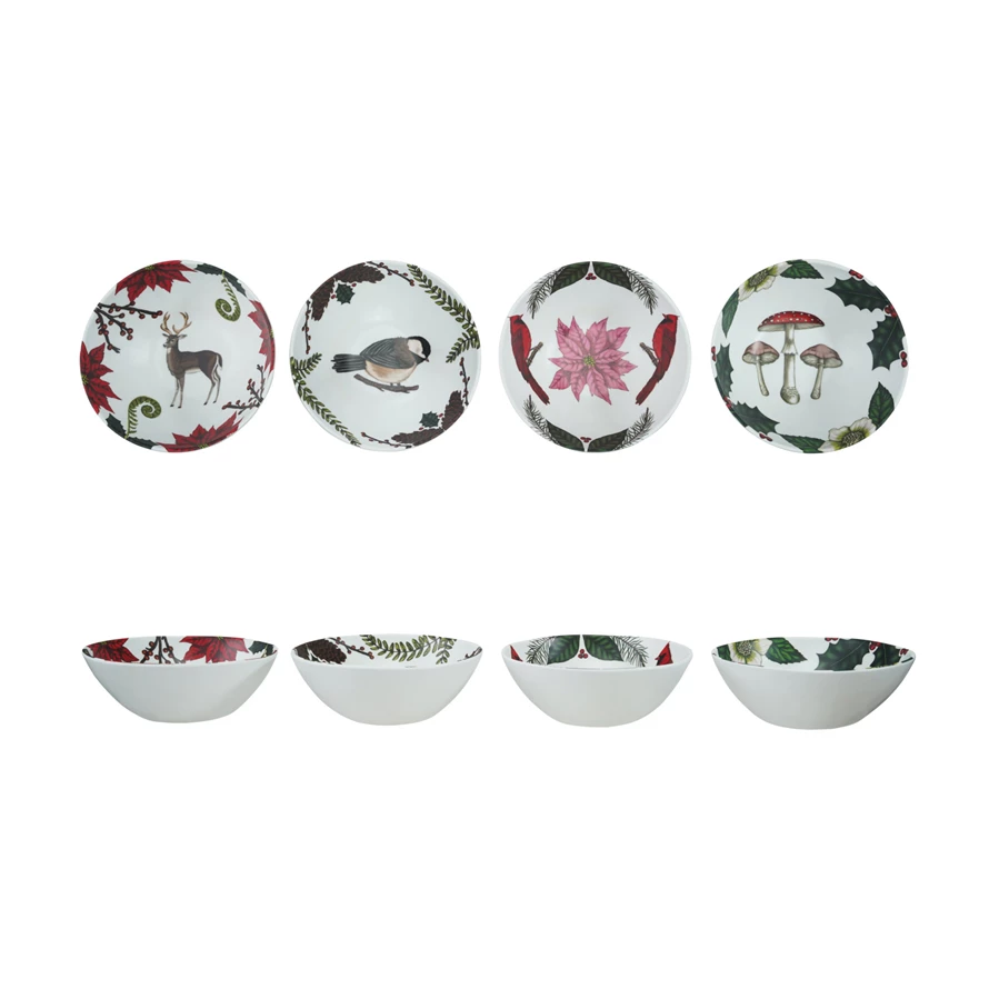 Melamine Bowl with Seasonal Botanicals & Animals, Matte Finish, 4 Styles ©