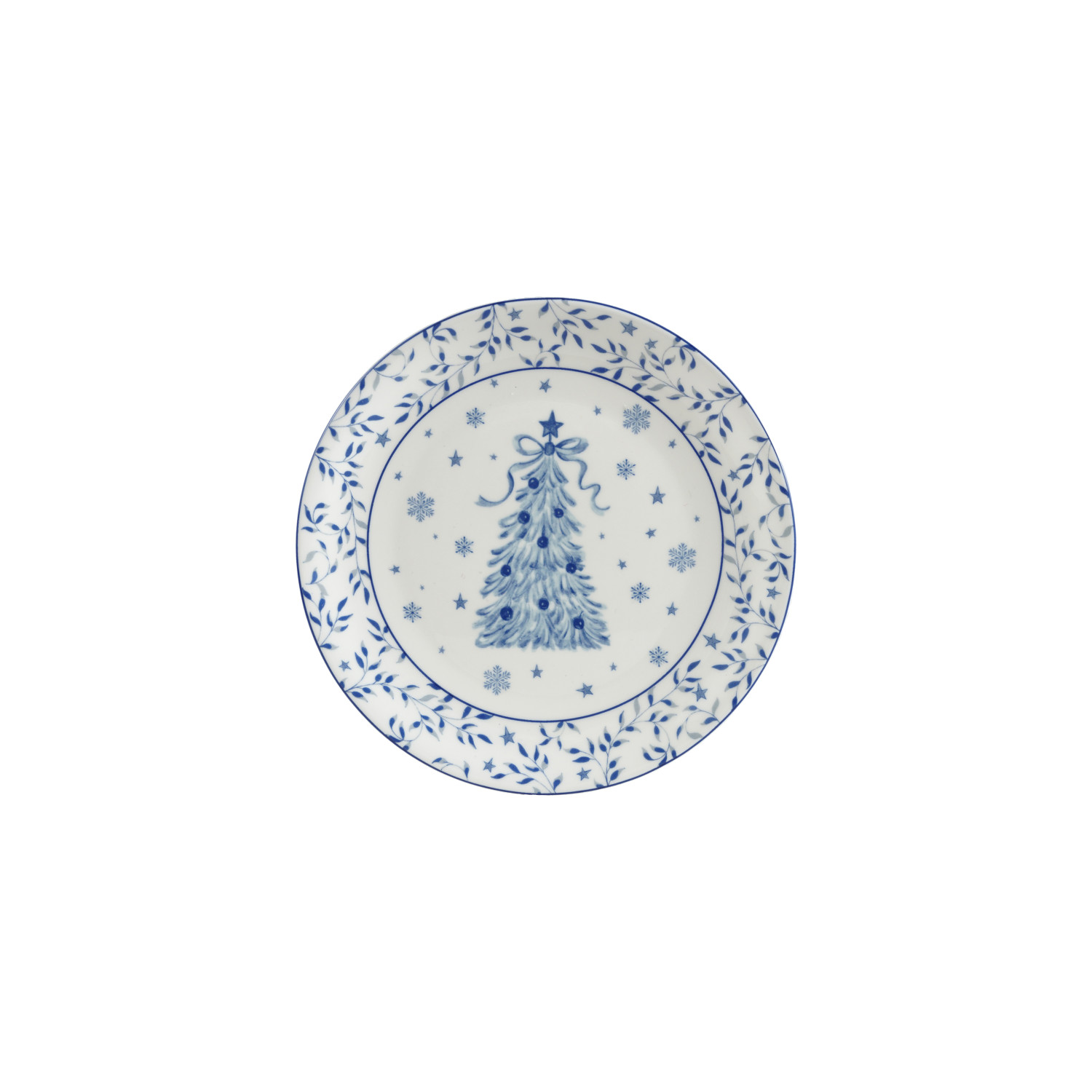 Stoneware Plate with Tree, White & Blue