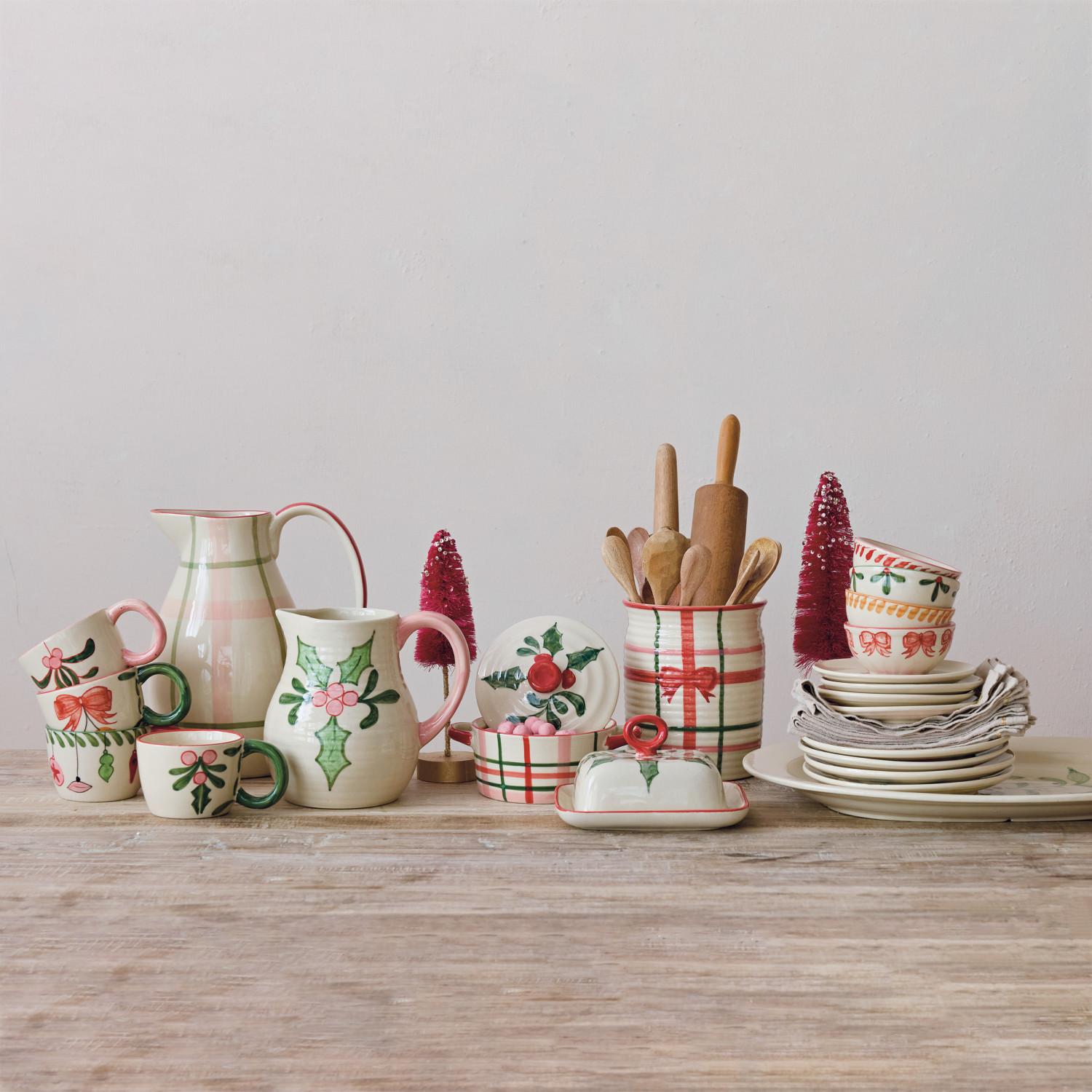 Hand-Painted Stoneware Bowl with Holiday Image Inside, 4 Styles (Each One Will Vary)
