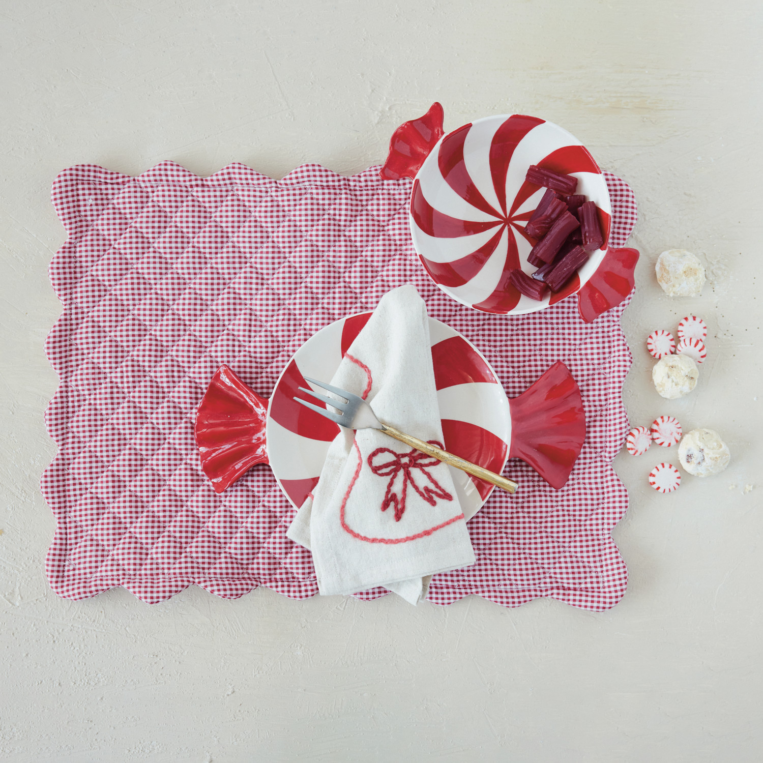 Hand-Painted Ceramic Candy Shaped Plate, Red & White