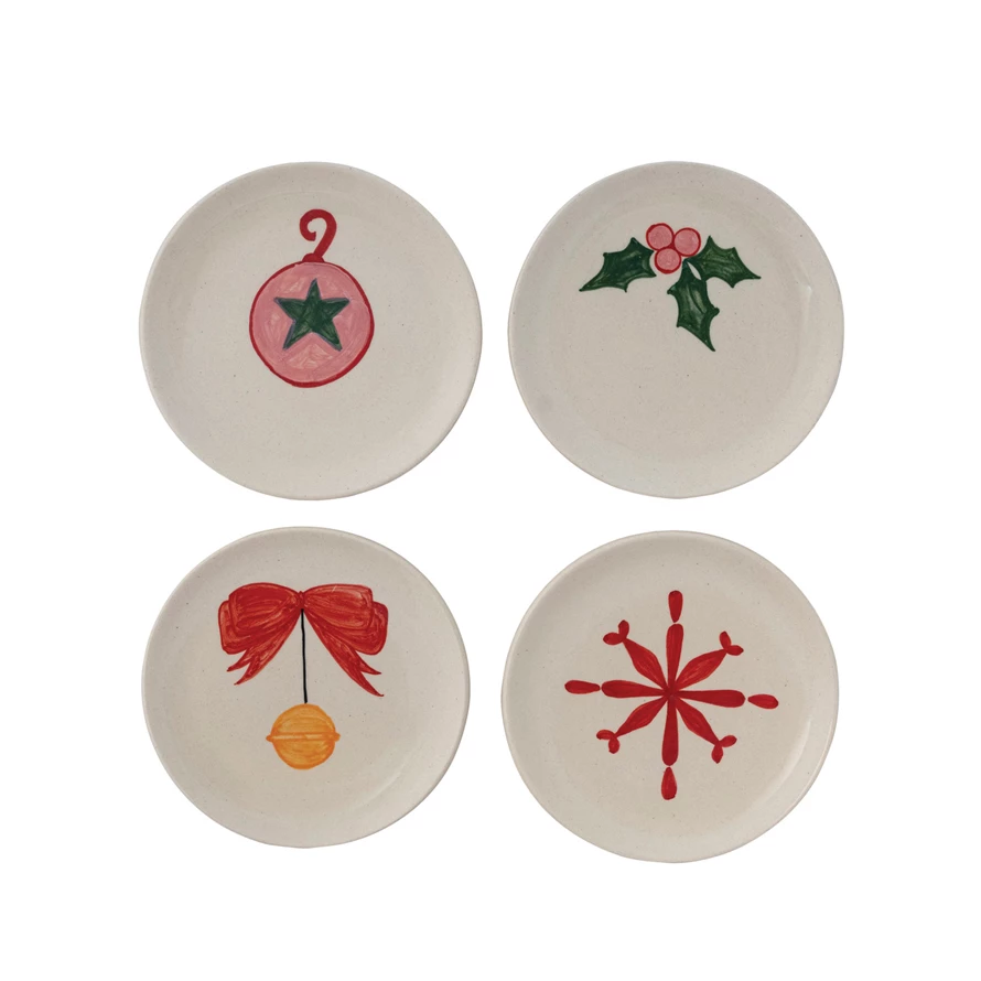 Hand-Painted Stoneware Plate with Holiday Image, 4 Styles (Each One Will Vary)