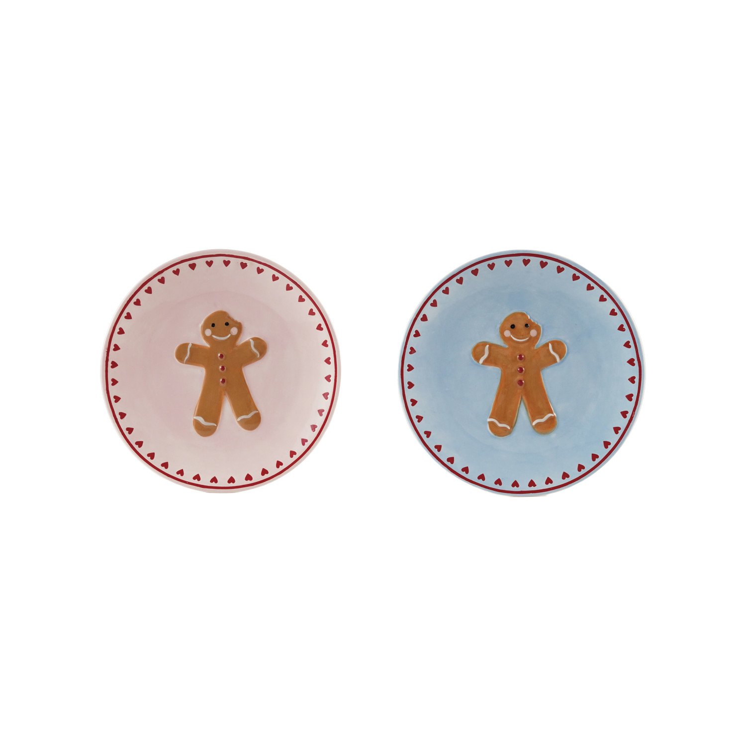 Hand-Painted Stoneware Plate with Wax Relief Gingerbread & Hearts, 2 Colors