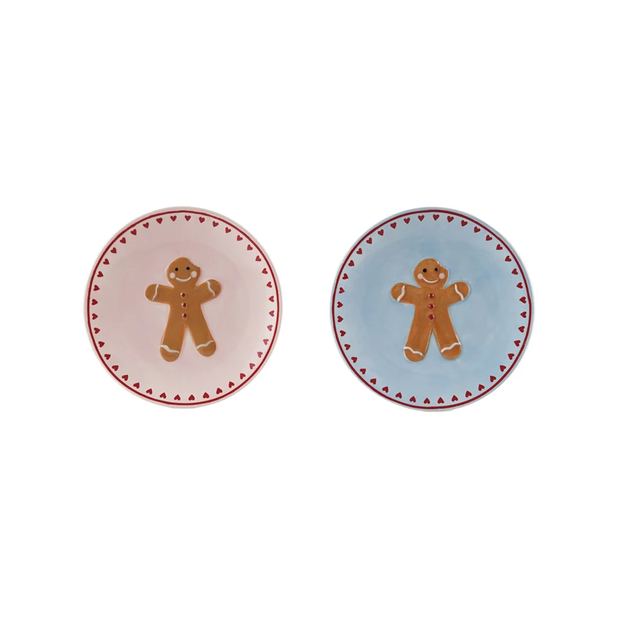 Catalog Name: 6-1/2" Round Hand-Painted Stoneware Plate w/ Wax Relief Gingerbread & Hearts, 2 Colors