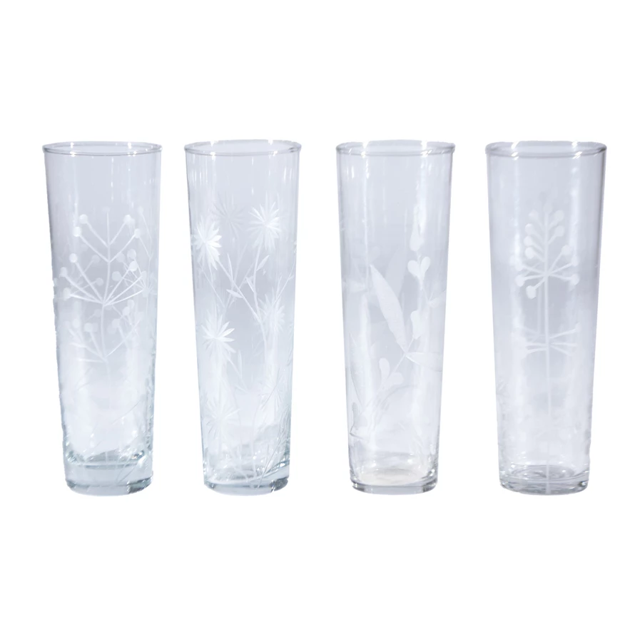 8 oz. Hand-Blown Drinking Glass with Etched Botanicals, 4 Styles