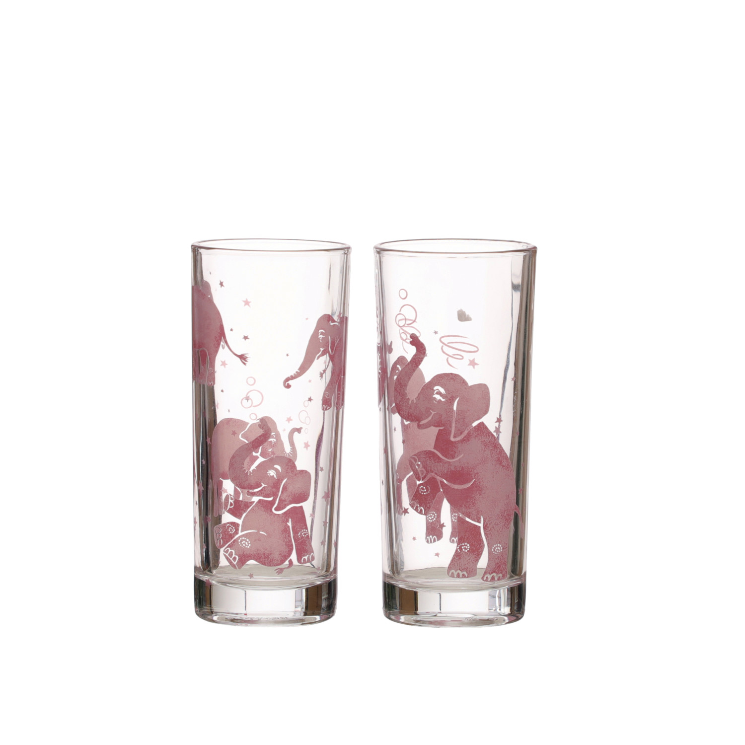 Catalog Name: 2-1/4" Round x 5-1/4"H 6 oz. Highball Drinking Glass w/ Pink Elephants, 2 Styles ©