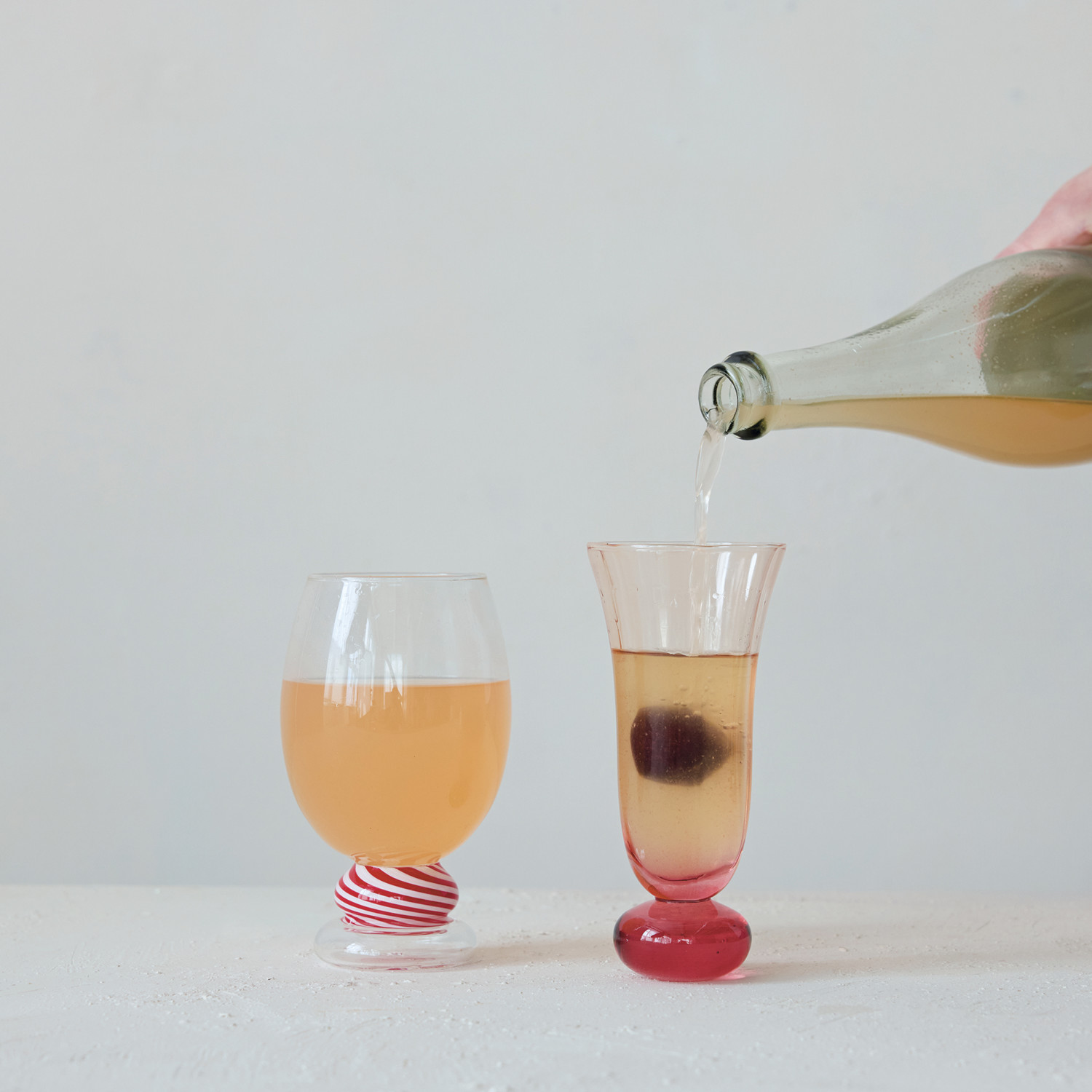 6 oz. Blown Fluted Drinking Glass with Ball Stem, Pink