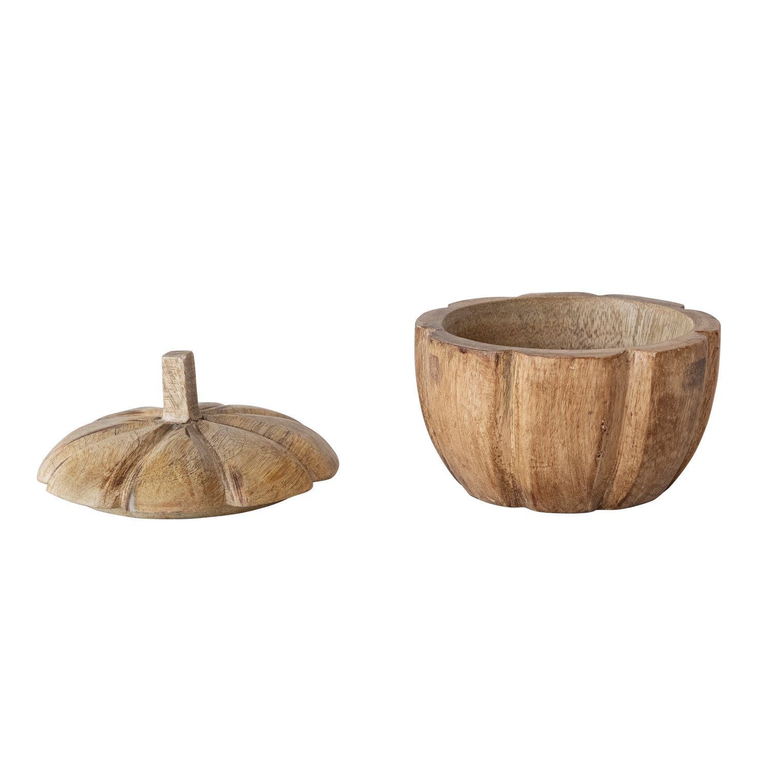 Hand-Carved Mango Wood Pumpkin Shaped Container with Lid, Natural