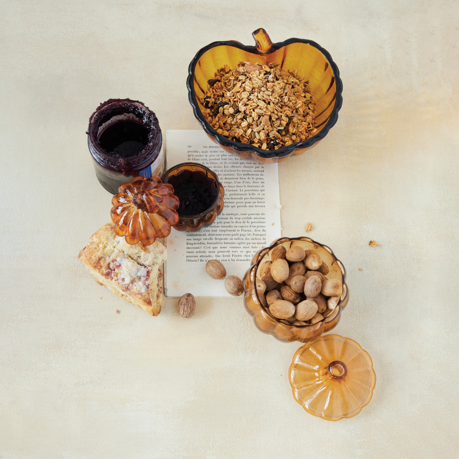 Hand-Blown Glass Pumpkin Shaped Jar with Lid, Amber Color
