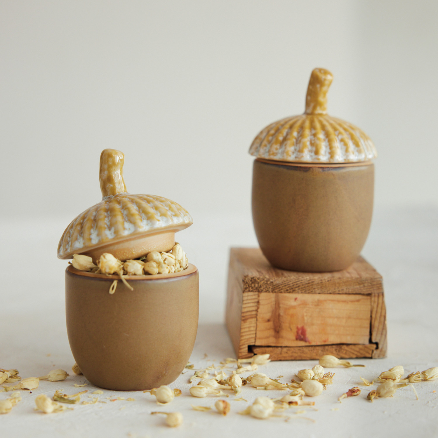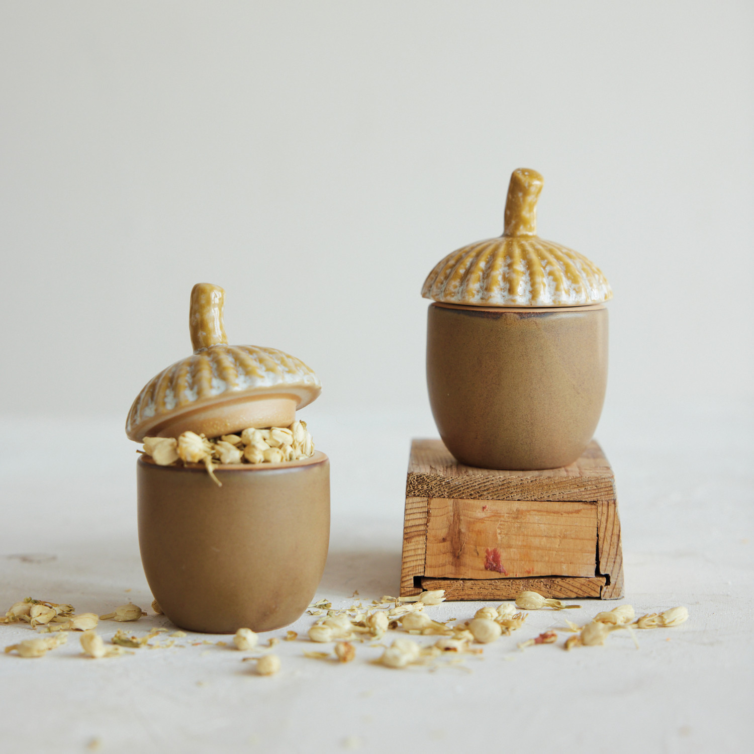 Stoneware Acorn Shaped Jar with Lid, Matte Reactive Glaze (Each One Will Vary)