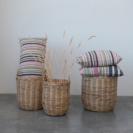Catalog Name: 4-3/4" Round x 5-3/4"H Hand-Painted Stoneware Ornament Shaped Jar w/ Wax Relief Pattern, Multi Color ©