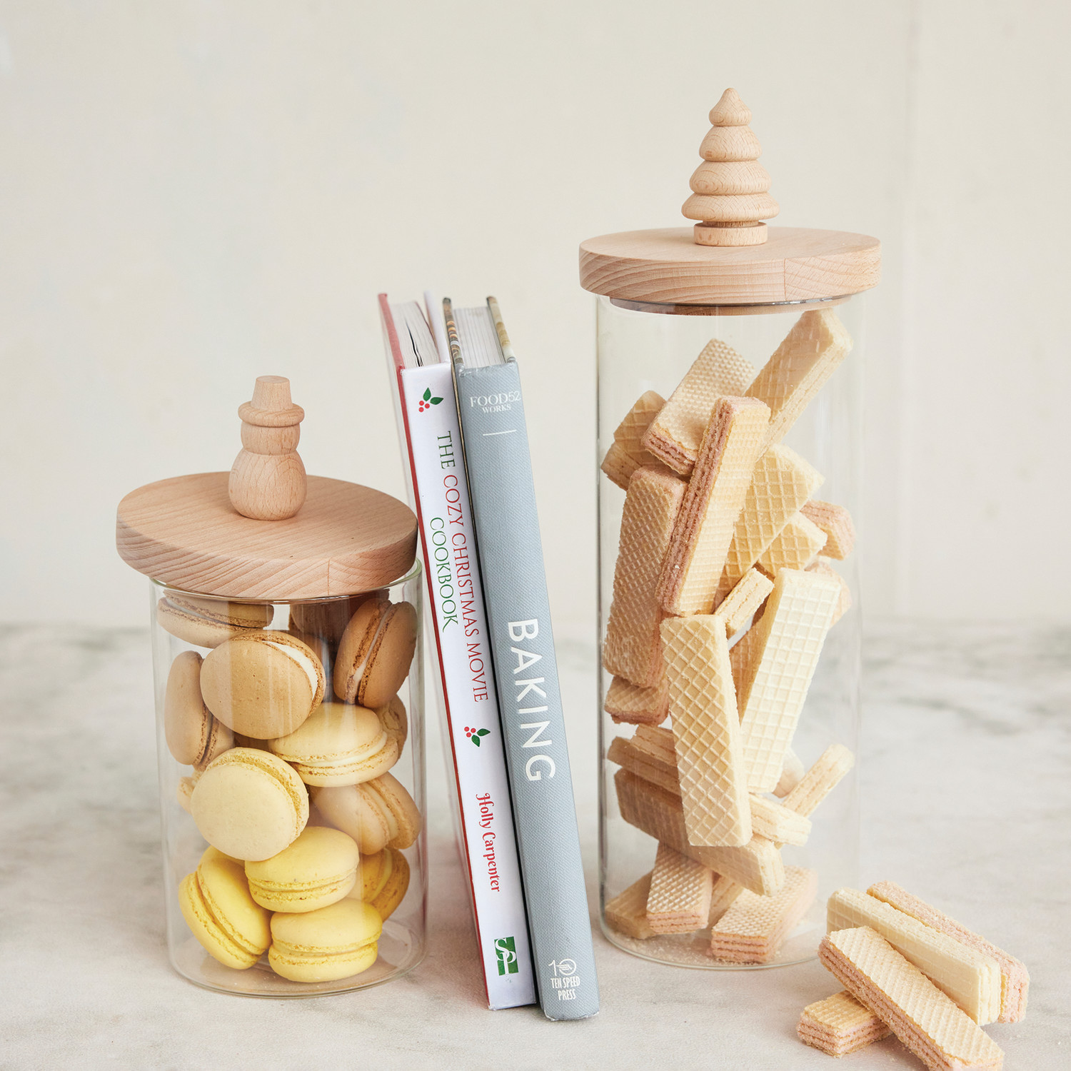 Catalog Name: 4" Round x 12"H Glass Canister w/ Wood Lid & Christmas Tree Knob