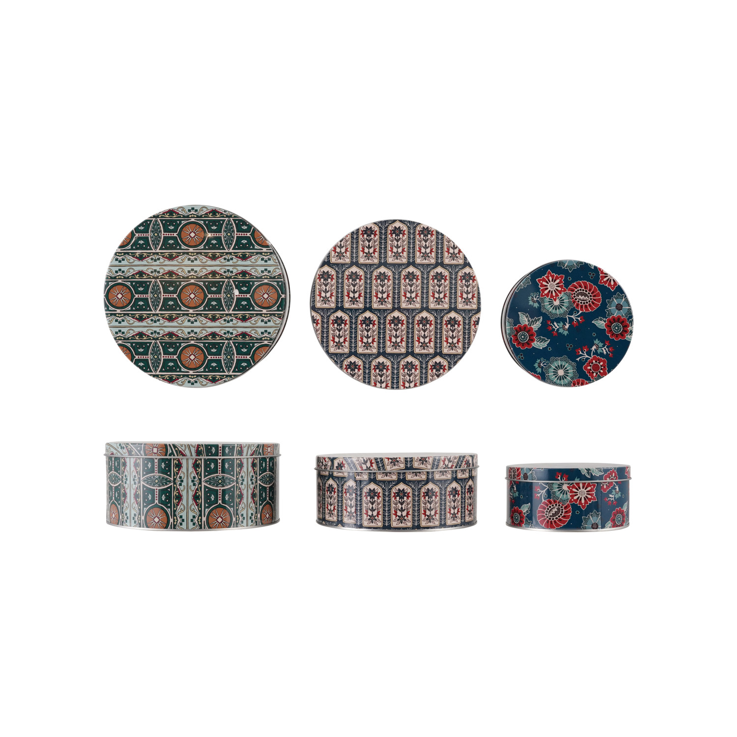 Tins with Lids & Patterns, Set of 3 ©