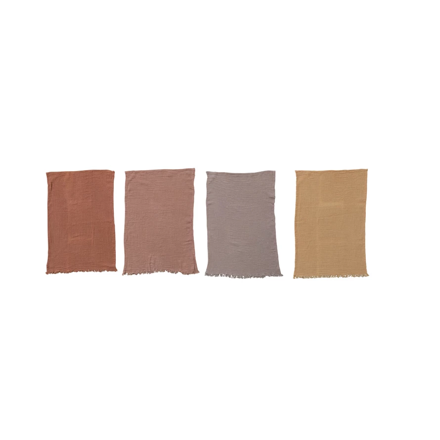 Catalog Name: 28"L x 18"W Cotton Double Cloth Tea Towel w/ Fringe, 4 Colors