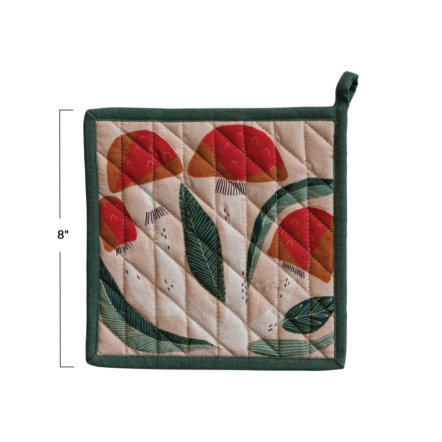 Catalog Name: 8" Square Quilted Cotton Pot Holder w/ Mushrooms, Multi Color ©