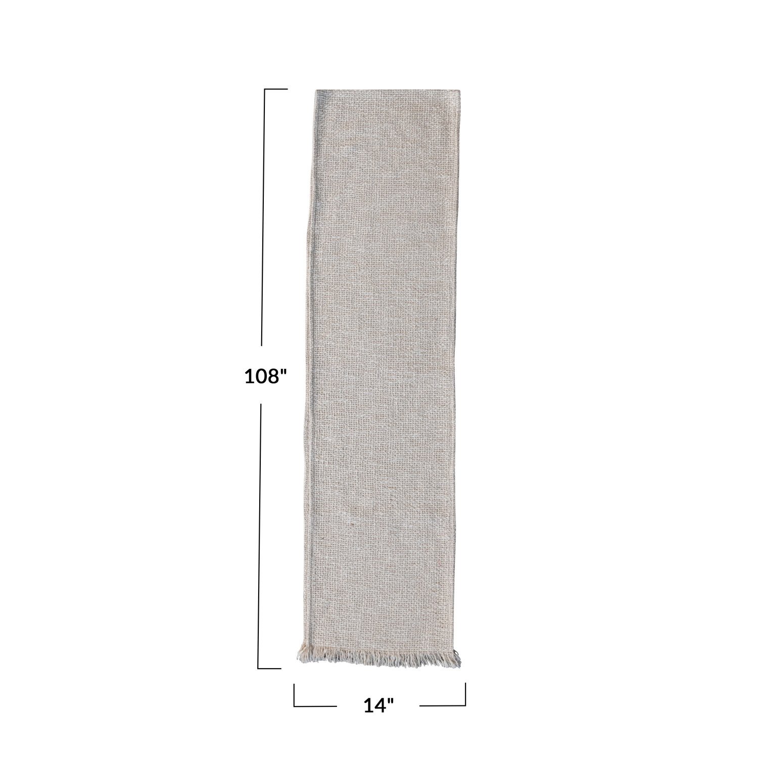 Catalog Name: 108"L x 14"W Woven Cotton Table Runner w/ Metallic Gold Thread & Fringe, Natural