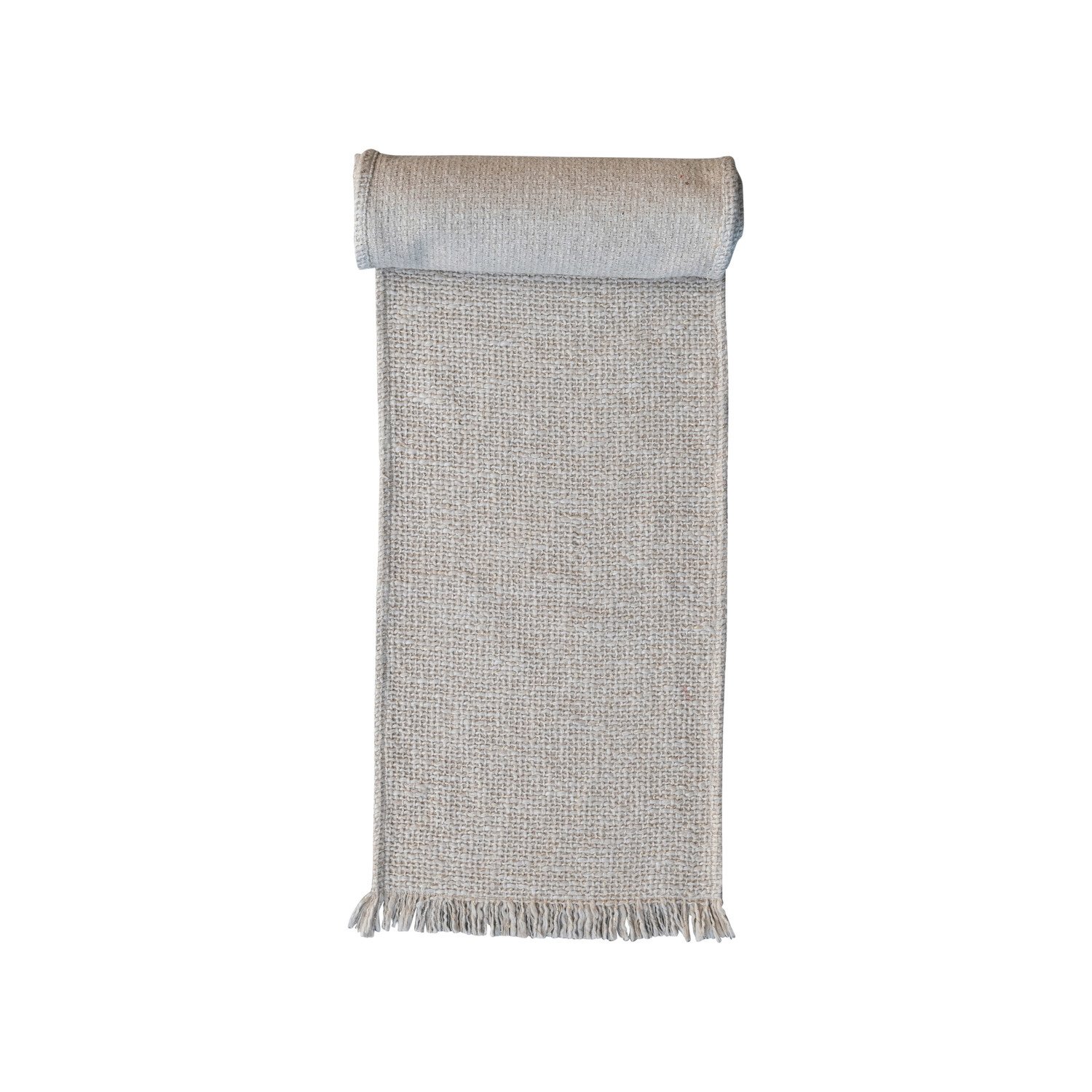 Woven Cotton Table Runner w/ Metallic Gold Thread & Fringe, Natural