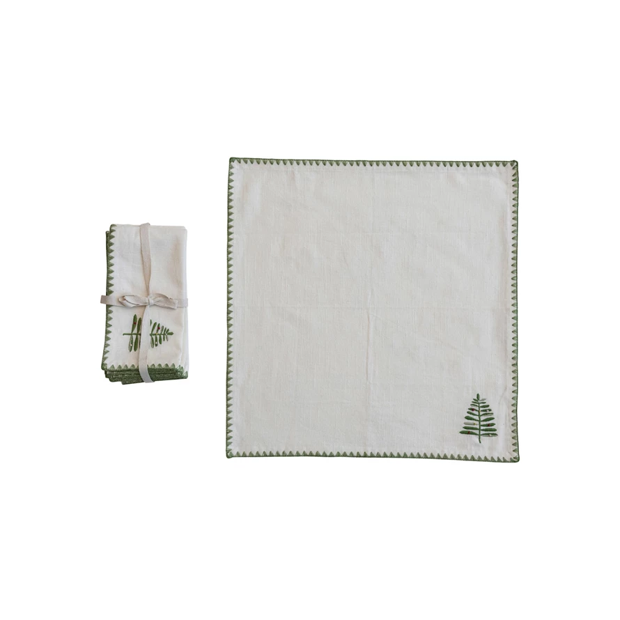 Catalog Name: 18" Square Cotton Napkins w/ Embroidered Tree & Edge, Natural & Green, Set of 4 ©