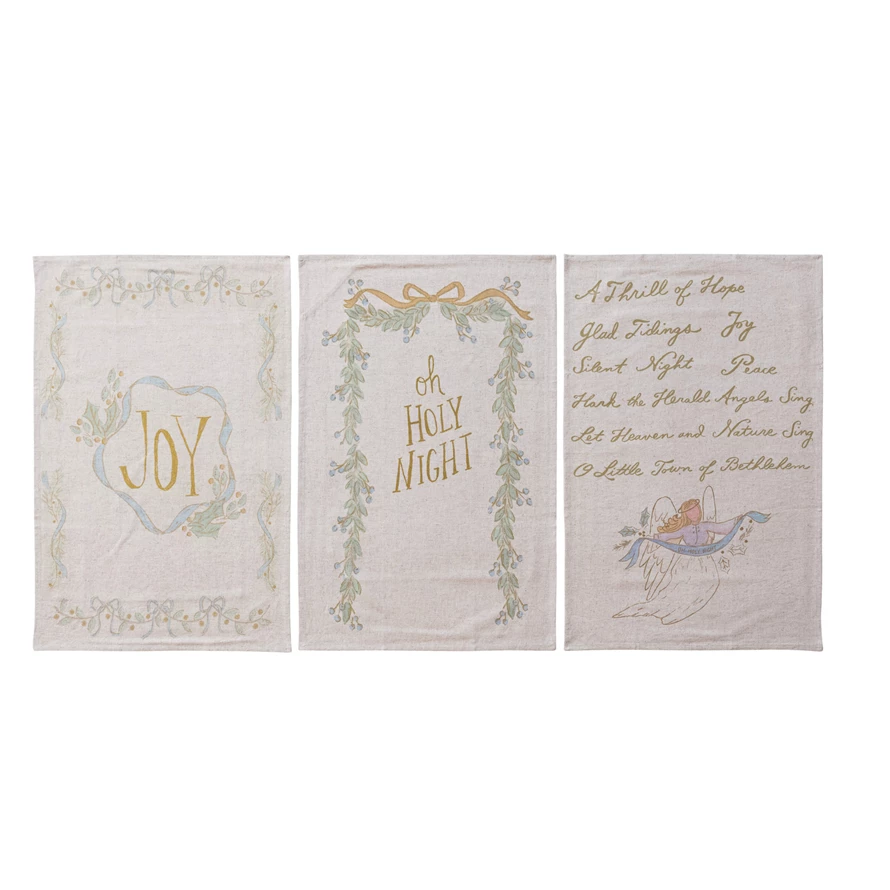 Cotton & Linen Printed Tea Towel with Holiday Saying, 3 Styles ©