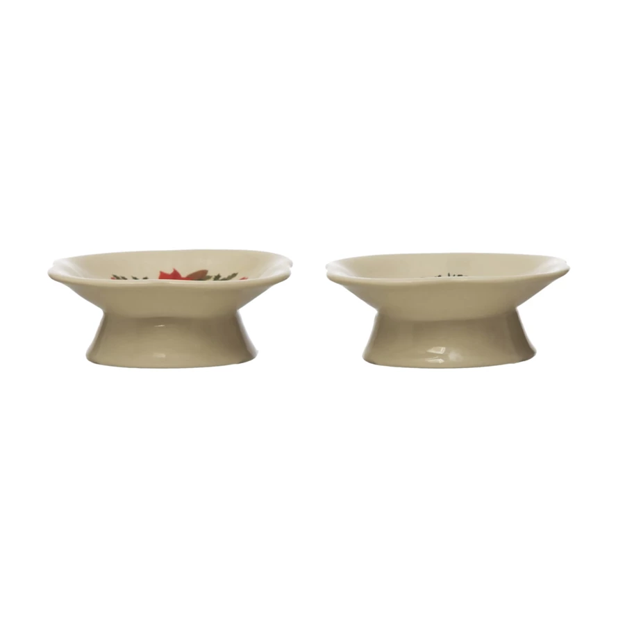 Stoneware Pedestal Dish with Forest Animal and Holiday Saying, 2 Styles