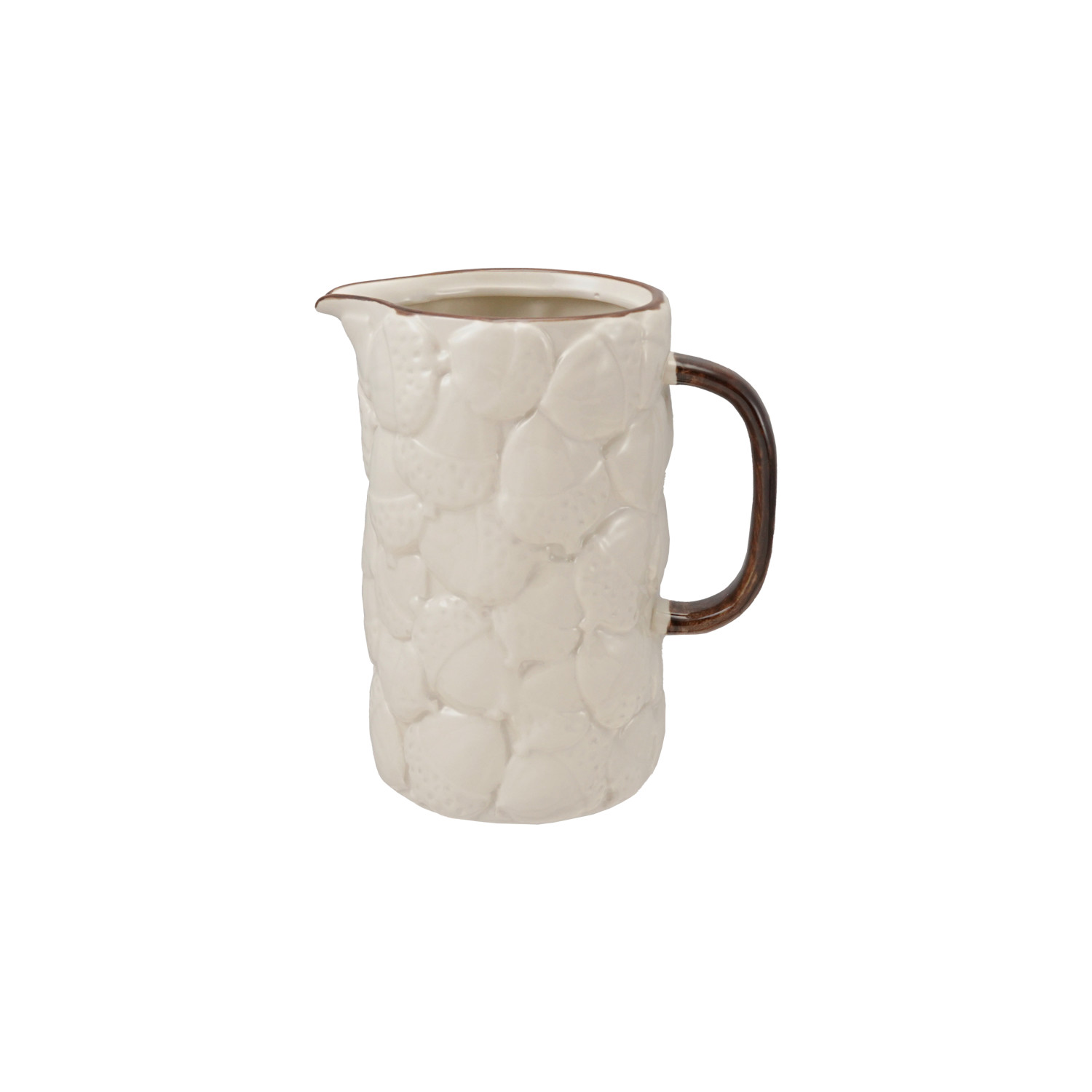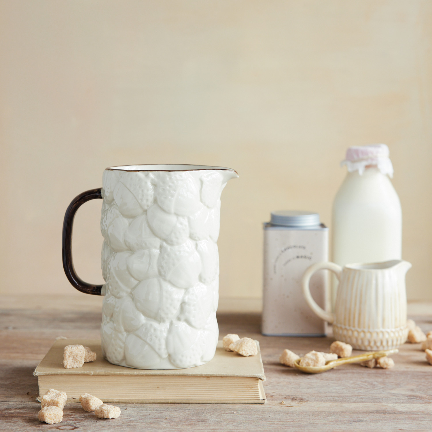 Catalog Name: 7"L x 4-1/2"W x 5-3/4"H 42 oz. Stoneware Pitcher w/ Embossed Acorns, White & Brown