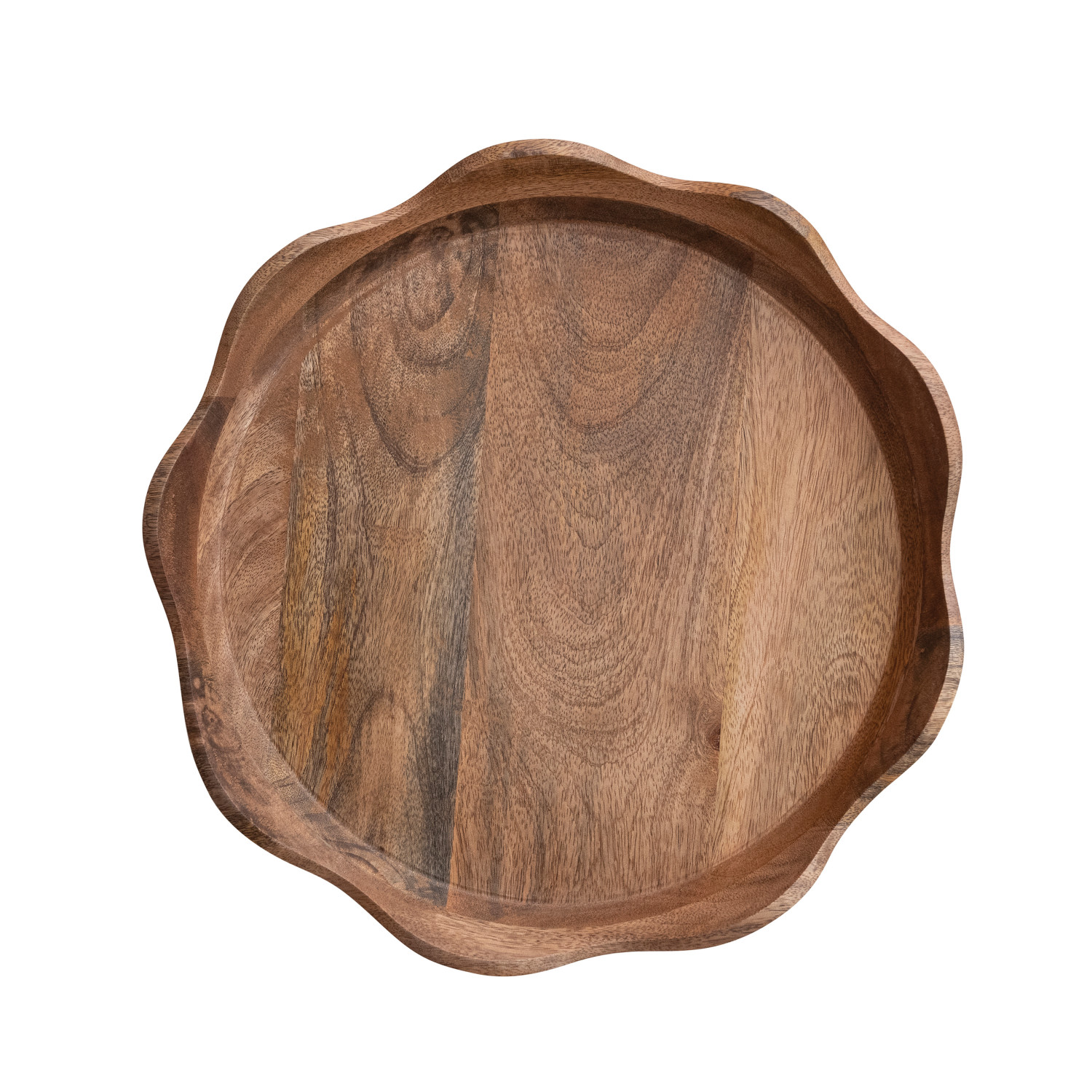 Catalog Name: 14-1/2" Round x 2"H Mango Wood Scalloped Tray, Natural