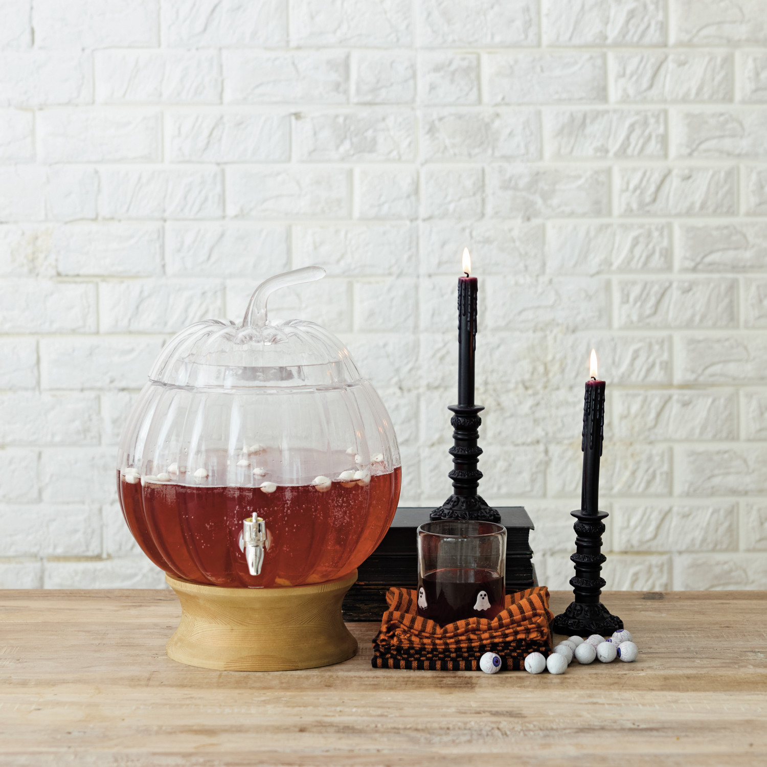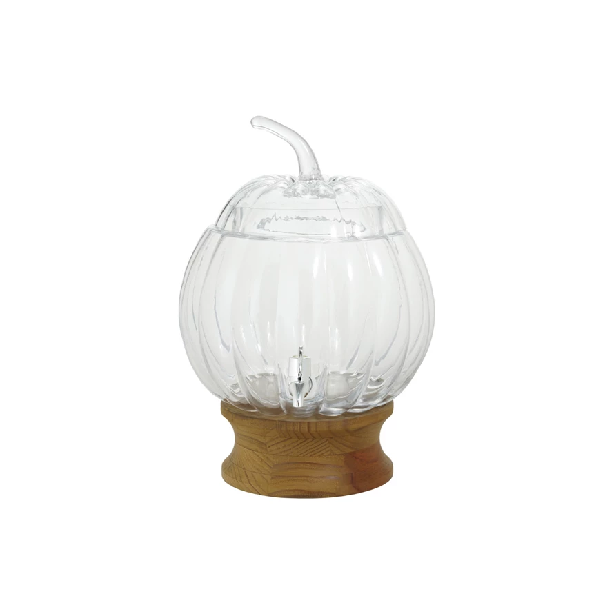 8-1/2 Quart Glass Pumpkin Shaped Beverage Dispenser with Wood Stand, Set of 2