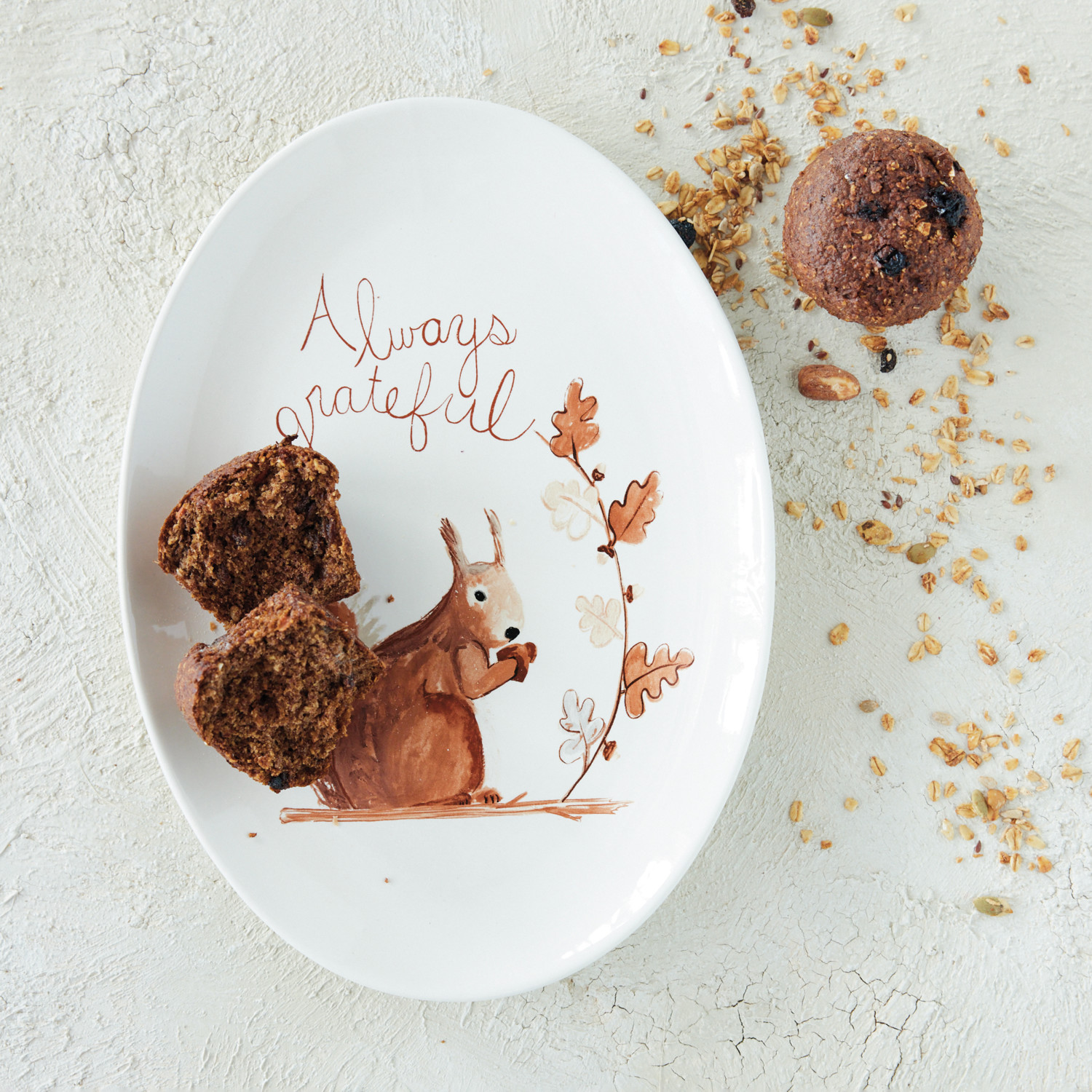 Stoneware Platter with Squirrel "Always Grateful" ©