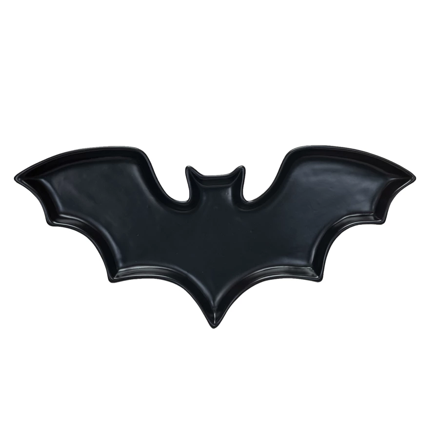 Catalog Name: 12"L x 5-1/2"W Stoneware Bat Shaped Dish, Matte Black
