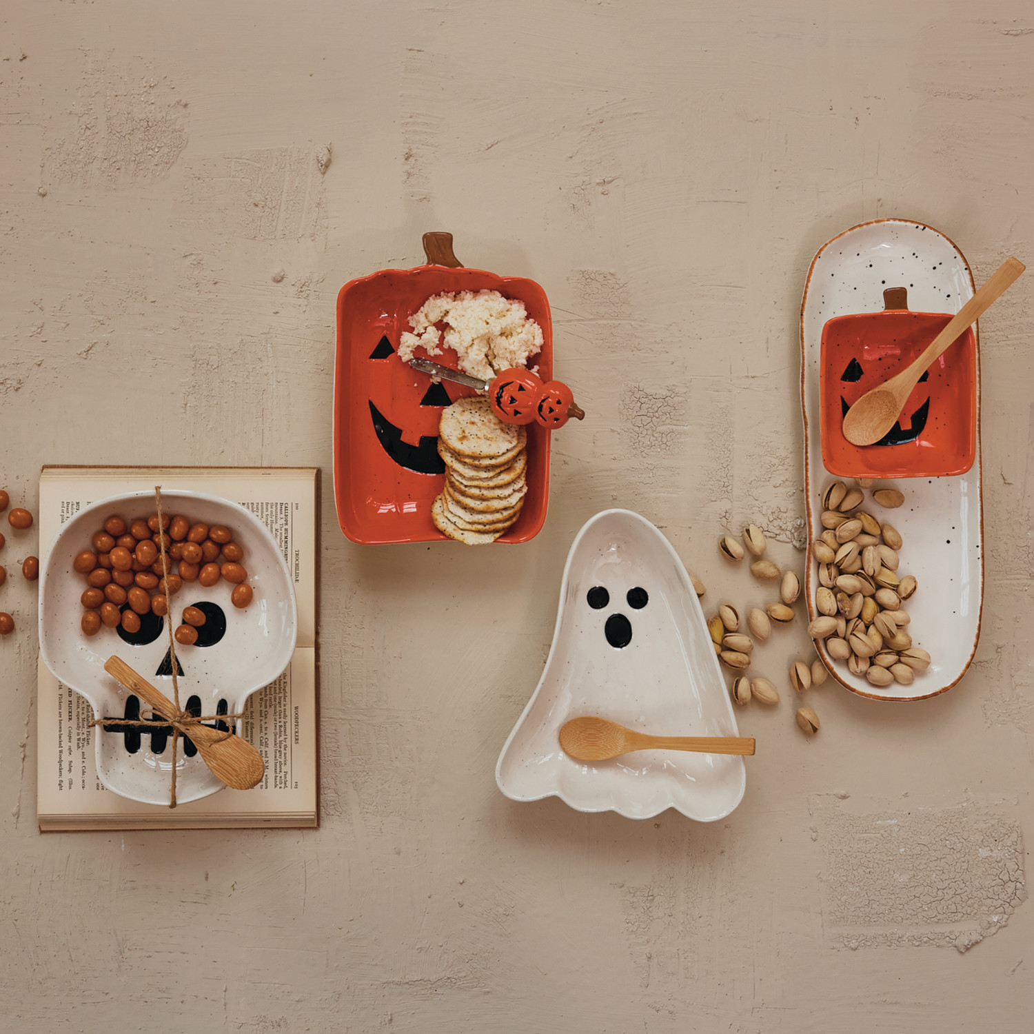 Stoneware Skull Shaped Dish with Spoon, Boxed Set of 2 Tied with Jute