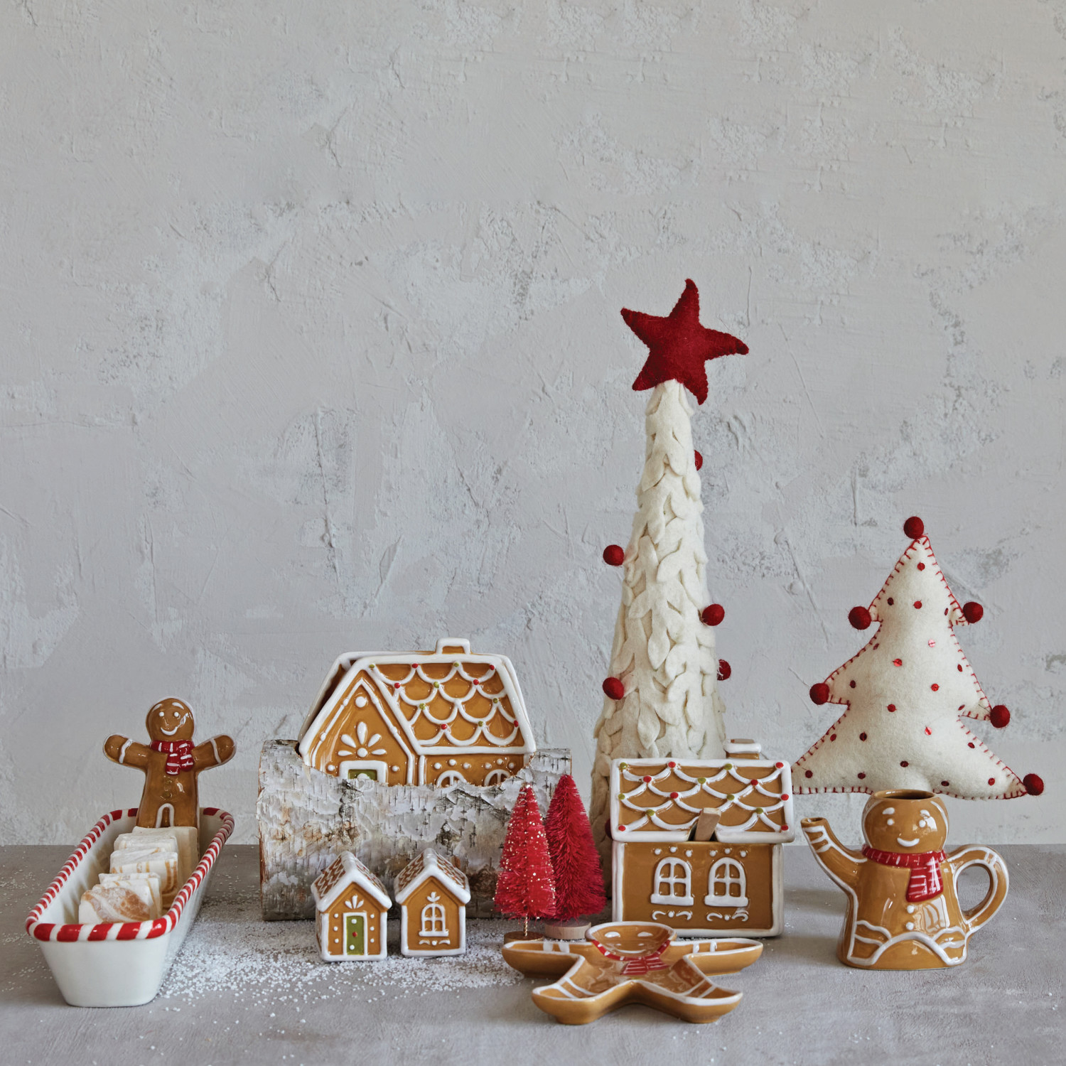 Catalog Name: 5"L x 2-3/4"W x 4"H 6 oz. Hand-Painted Ceramic Gingerbread Man w/ Scarf Creamer, Brown, Red & White ©