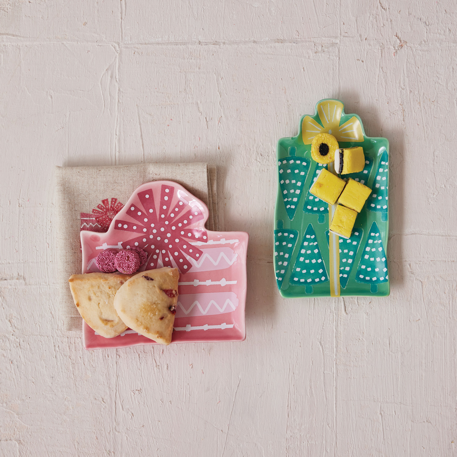 5-1/4"L - 6"L Stoneware Gift Shaped Plate, Multi Color, 2 Styles ©
