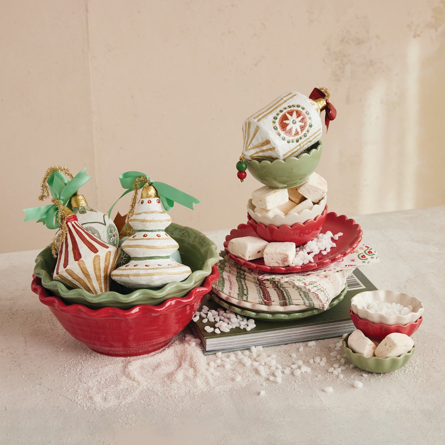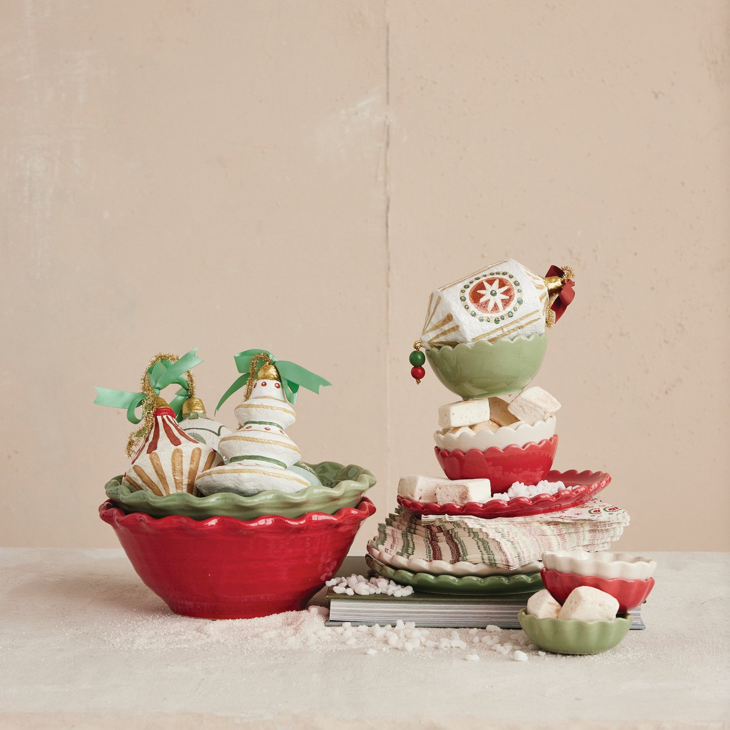 10" Round x 4"H Stoneware Scalloped Bowl, 2 Colors