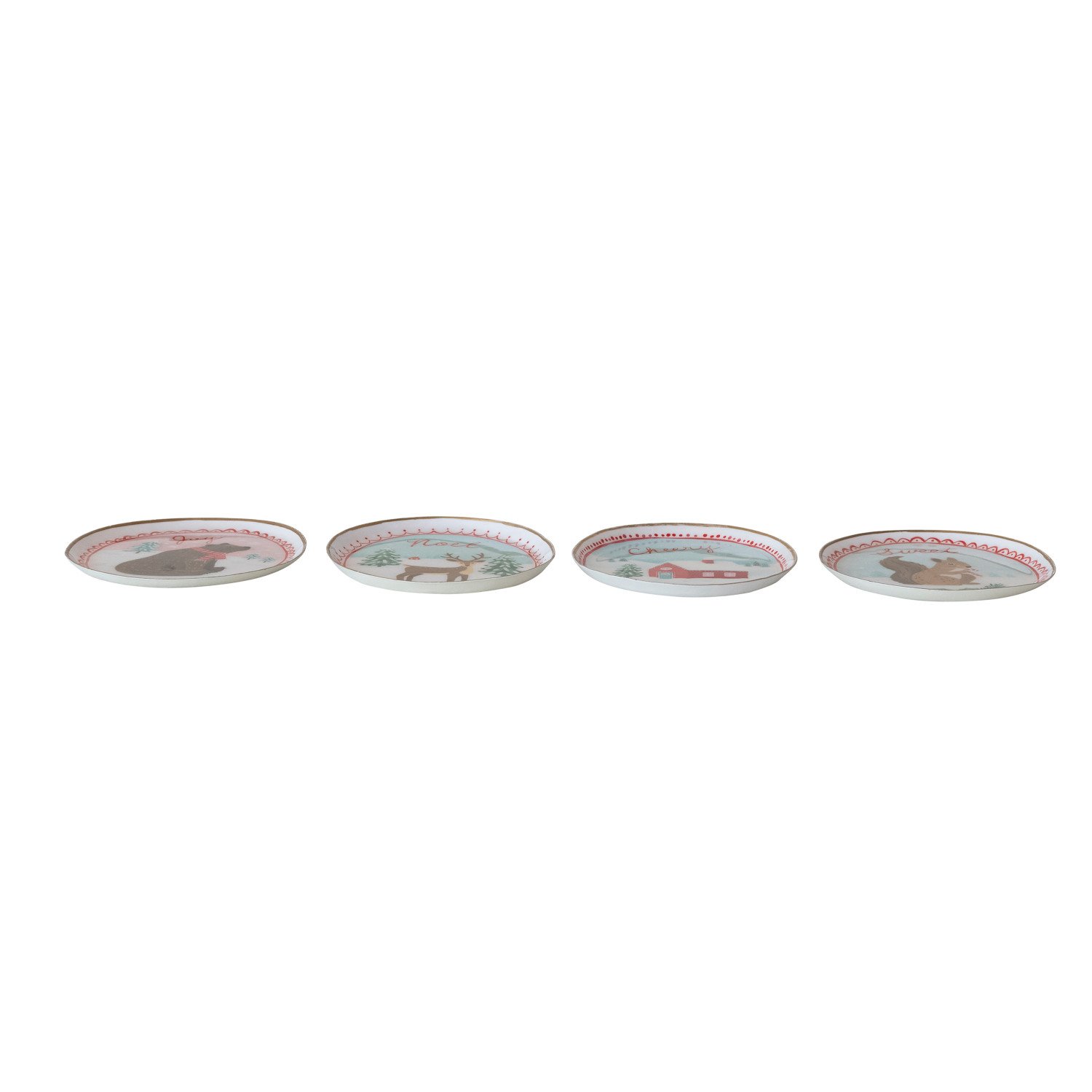 Catalog Name: 6"L x 5"W Oval Enameled Metal Tray w/ Holiday Image, Word & Gold Edges, Multi Color, 4 Styles ©