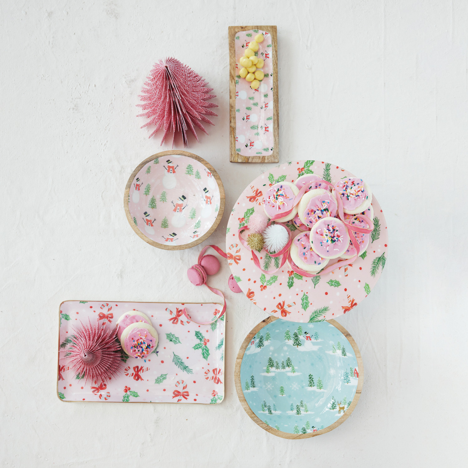 Catalog Name: 13"L x 8"W Enameled Metal Tray w/ Holiday Pattern & Gold Edges, Multi Color ©