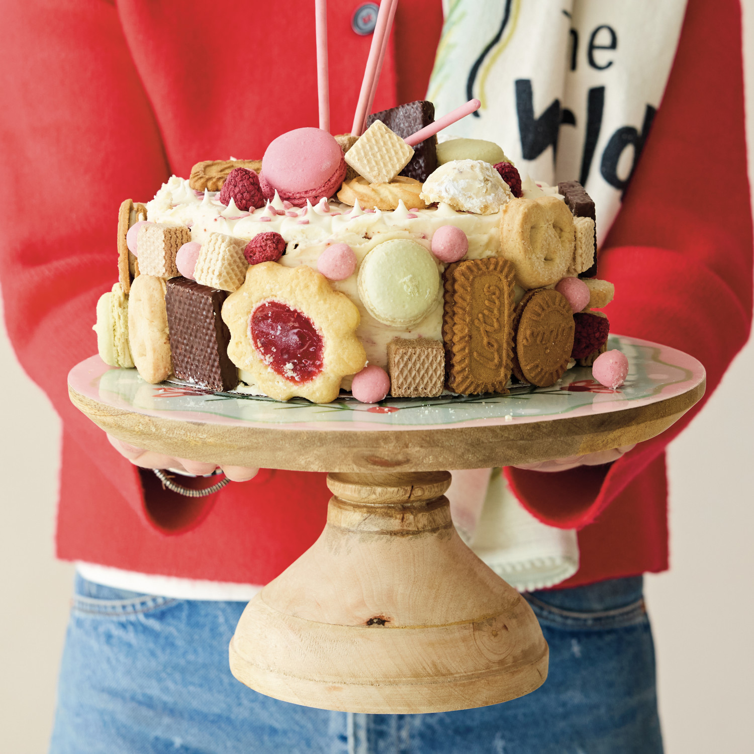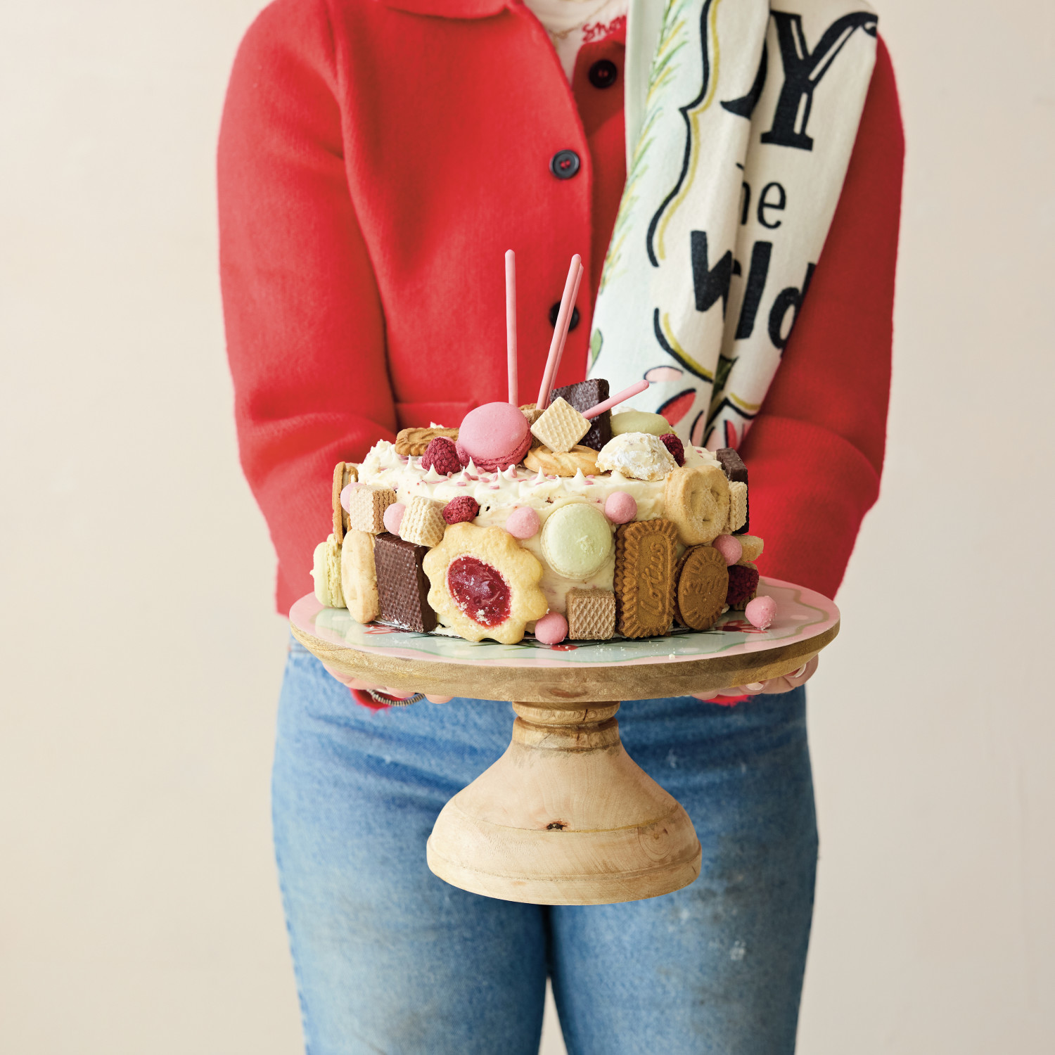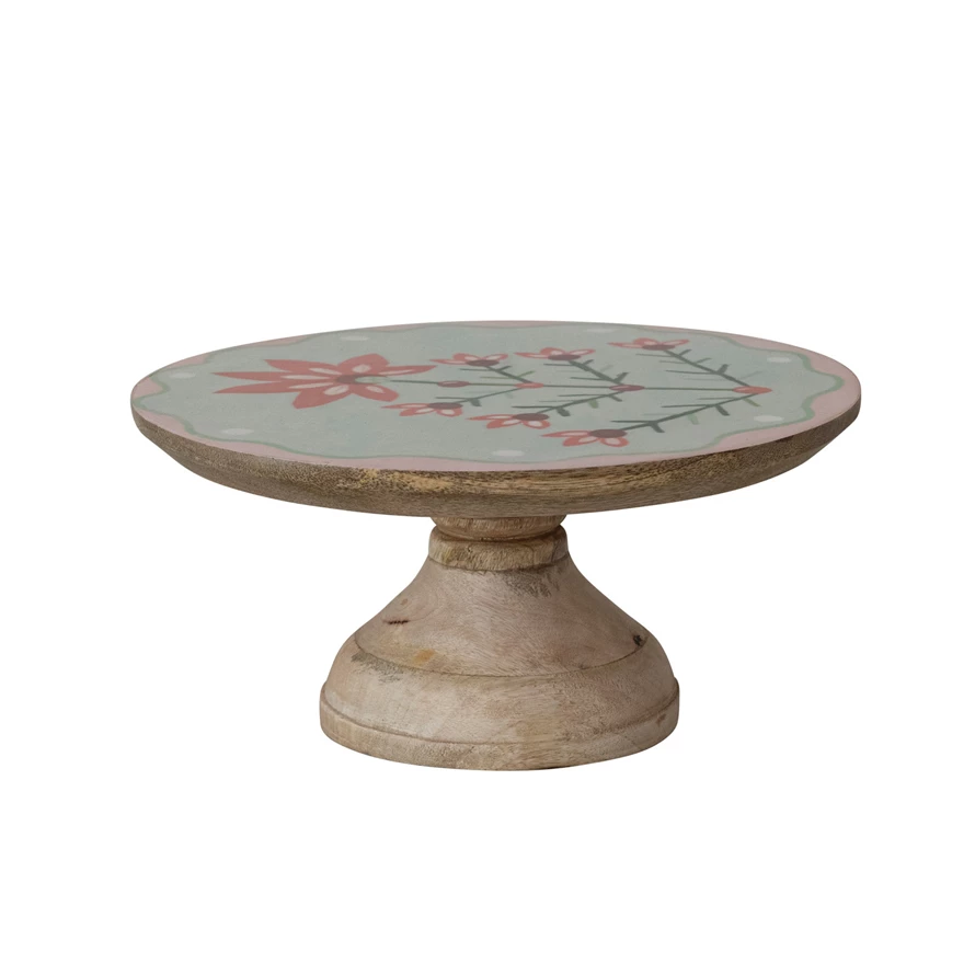 Enameled Mango Wood Pedestal with Holiday Botanicals ©