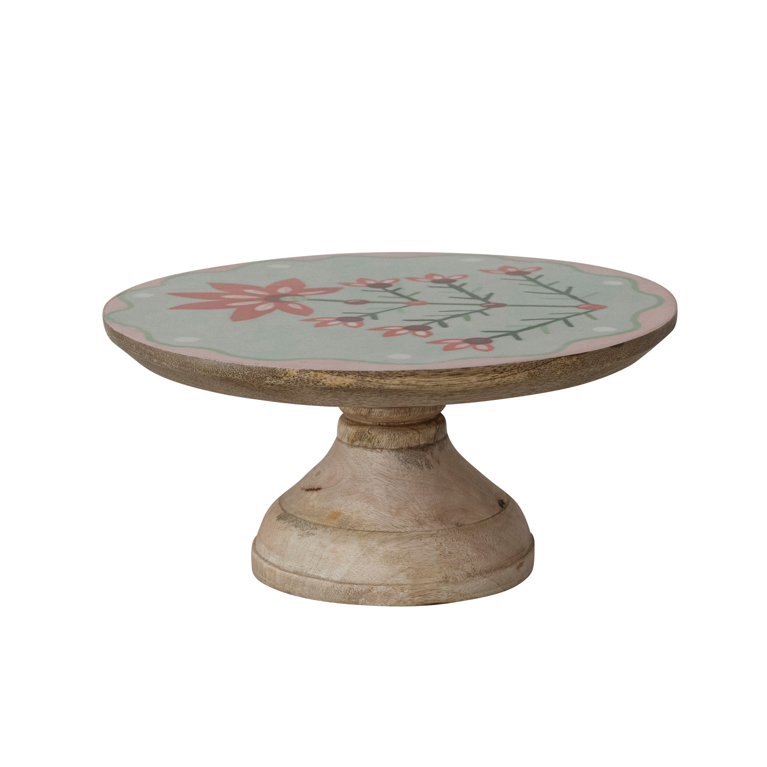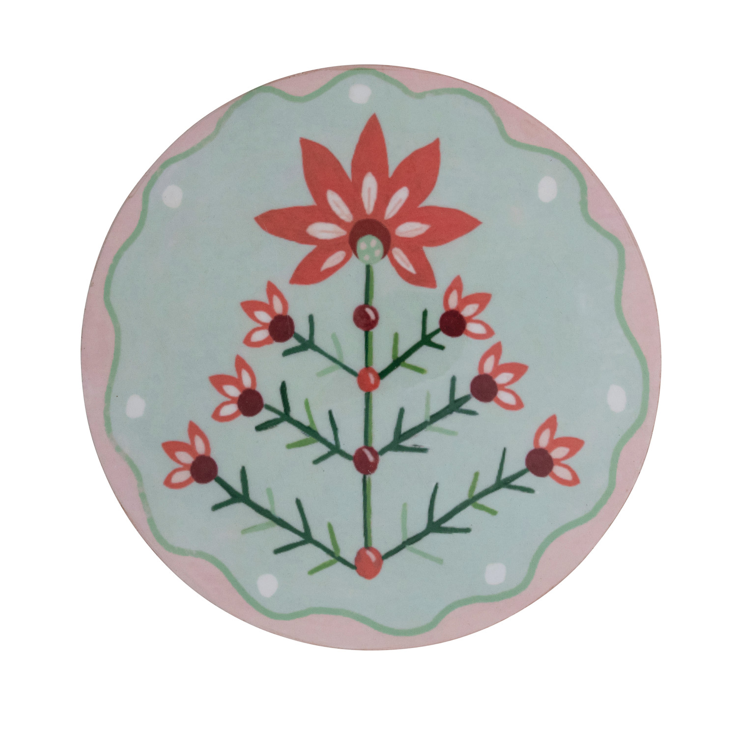 Catalog Name: 11-3/4" Round x 5-3/4"H Enameled Mango Wood Pedestal w/ Holiday Botanicals, Multi Color & Natural ©