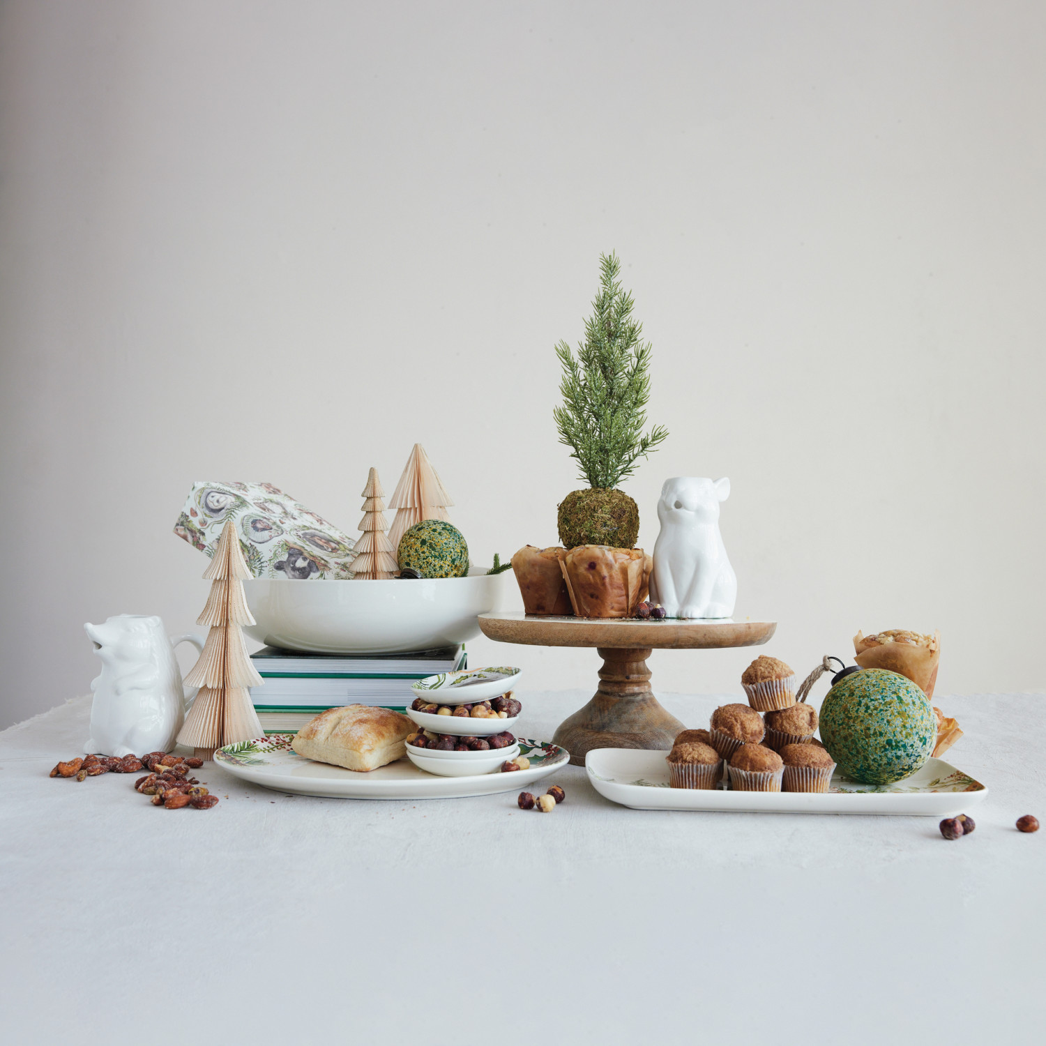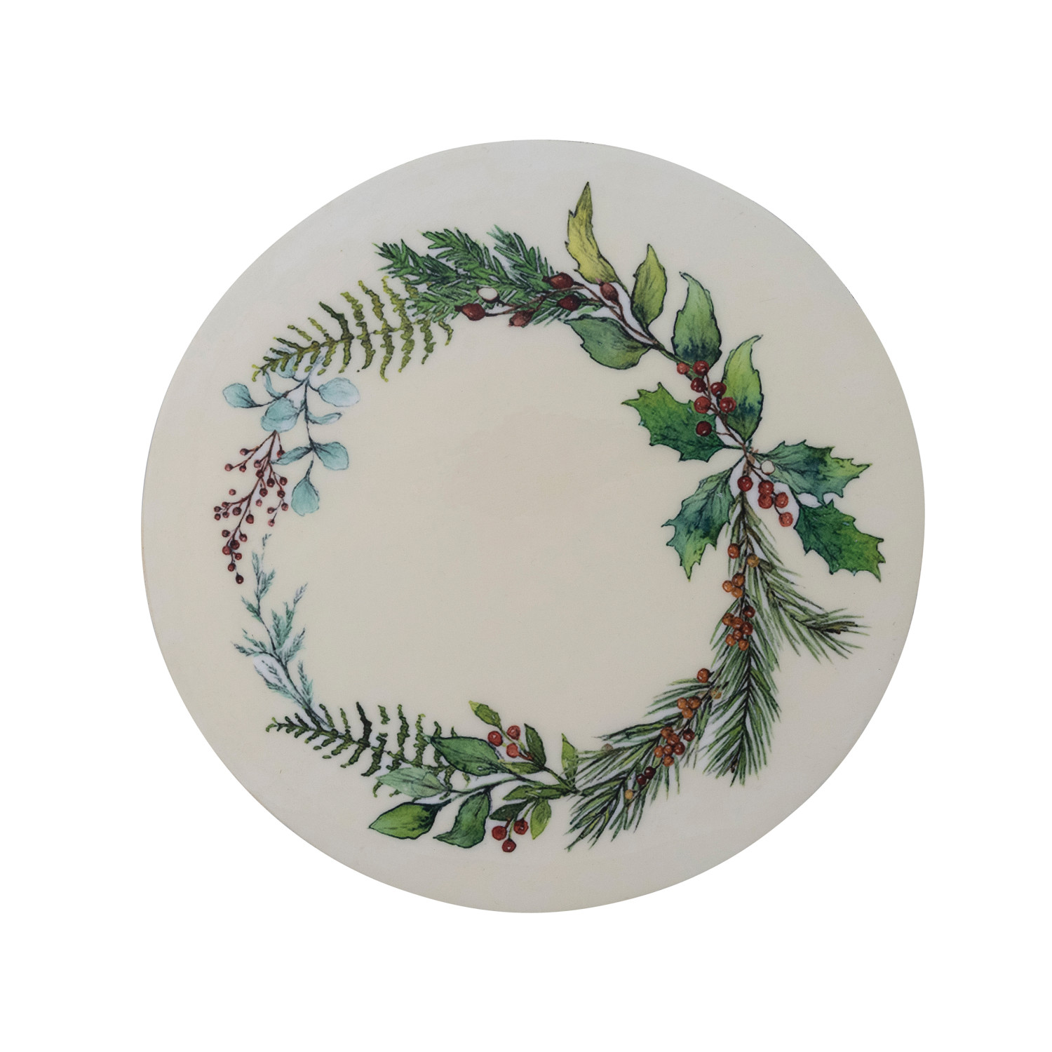 Catalog Name: 11-3/4" Round x 5-3/4"H Enameled Mango Wood Pedestal w/ Seasonal Botanicals, Multi Color ©