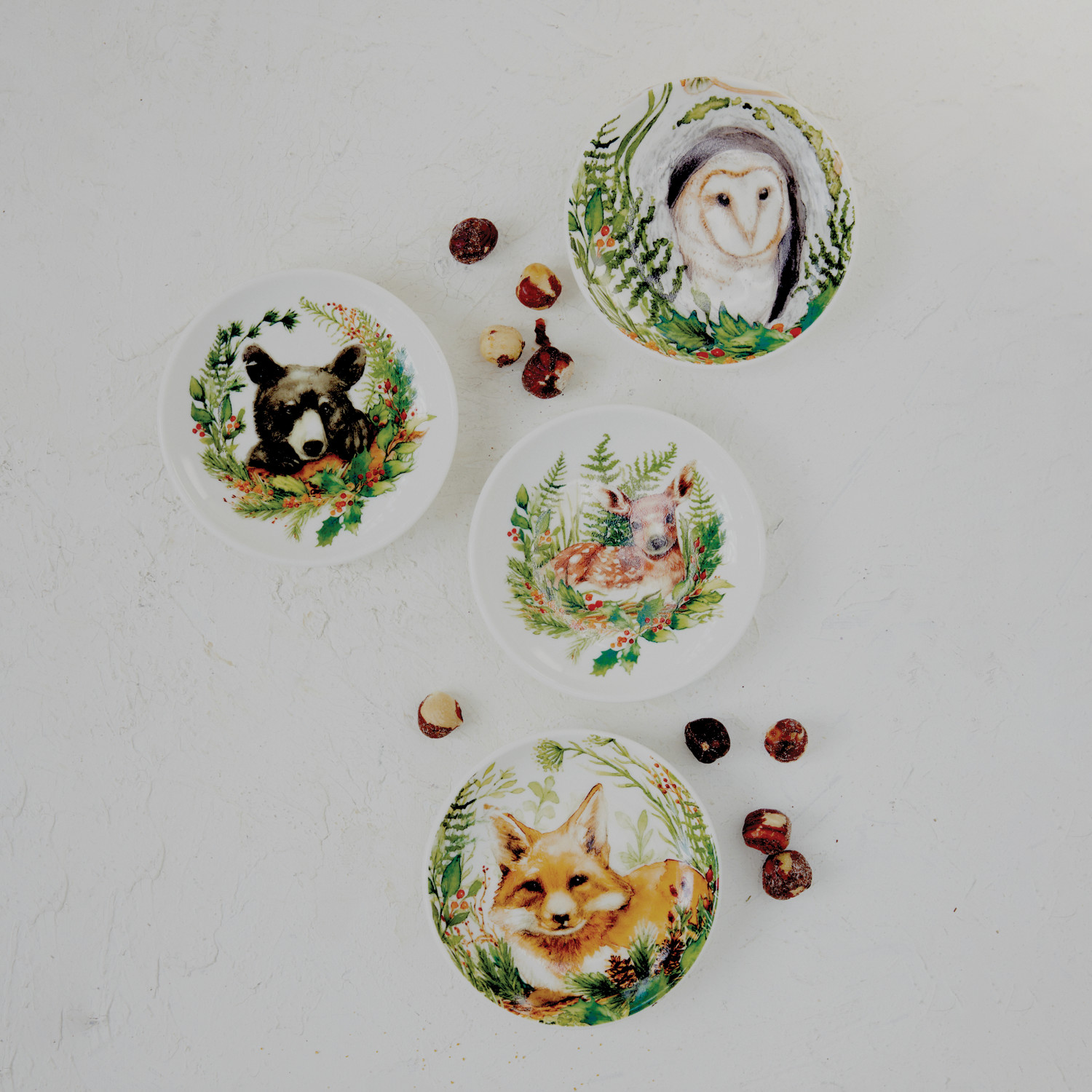 Stoneware Dish with Woodland Animal & Seasonal Botanicals, 4 Styles ©
