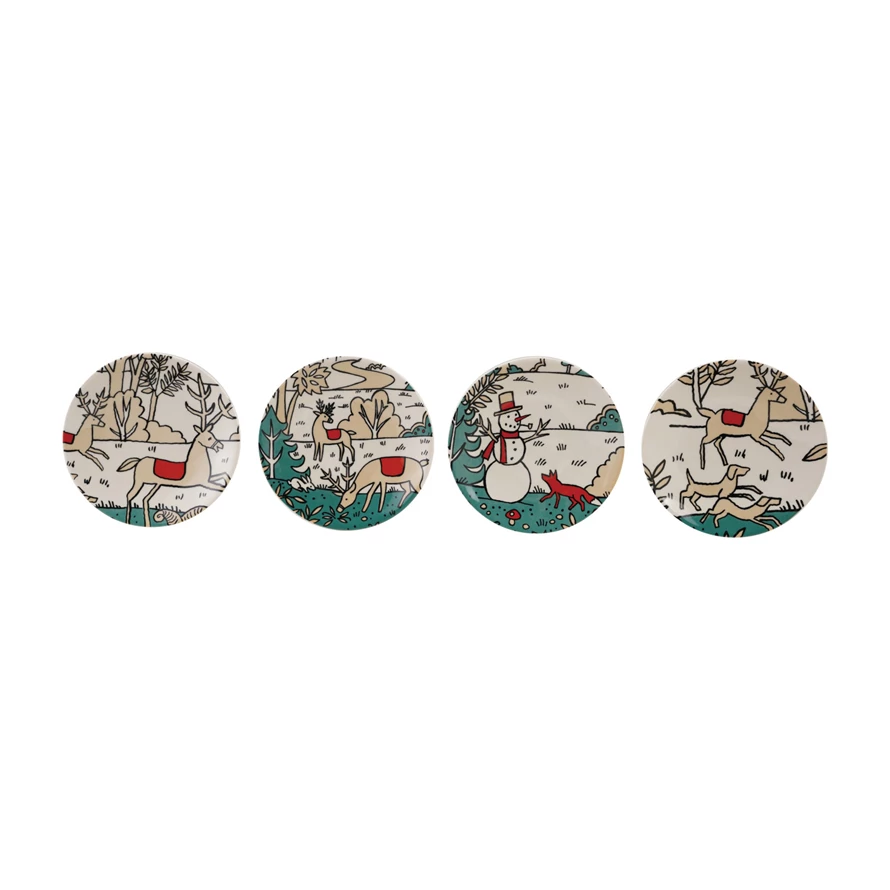 Stoneware Dish with Winter Scene & Reindeer, 4 Styles ©