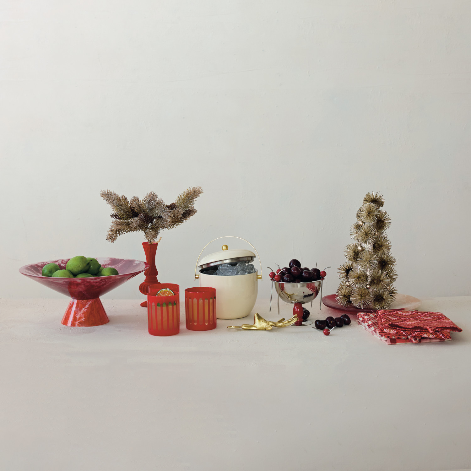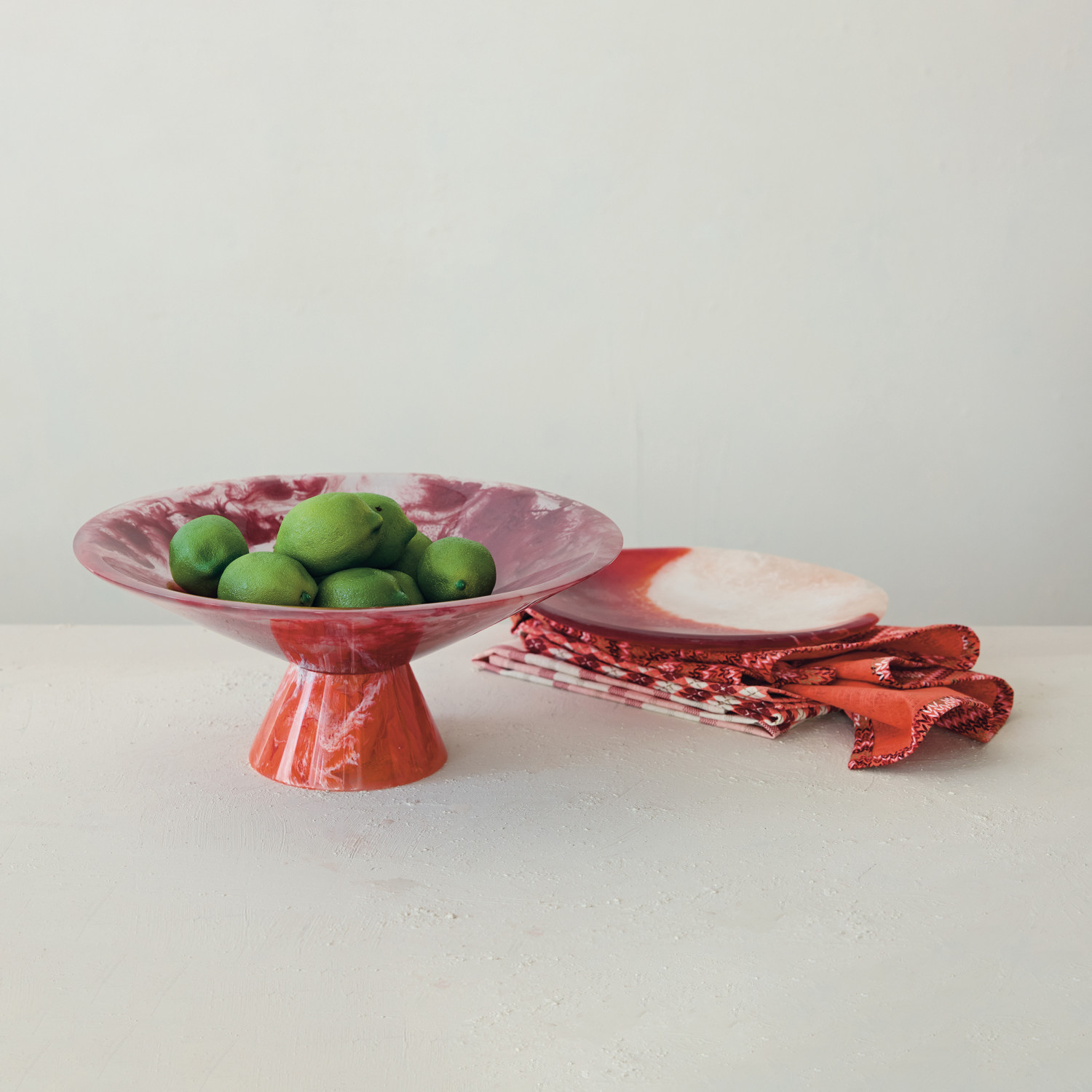 Marbled Resin Footed Bowl, Red (Each One Will Vary)