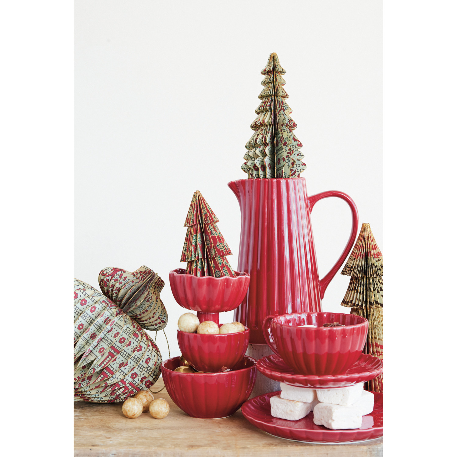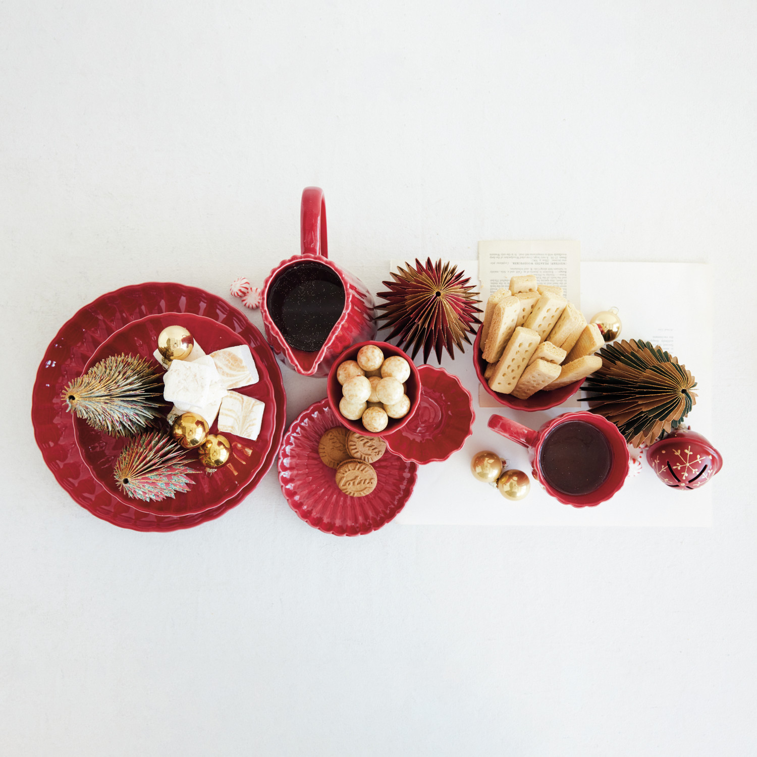 Stoneware Footed Scalloped Bowl, Red (Each One Will Vary)