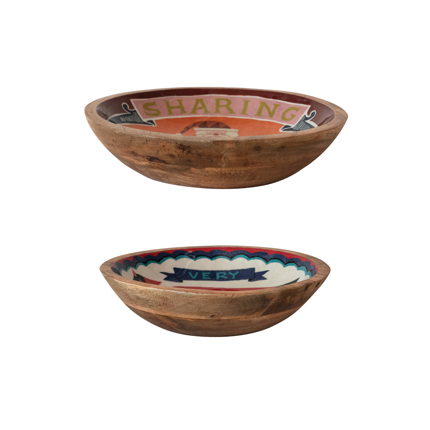 Enameled Mango Wood Bowls with Holiday Image & Saying, Set of 2 ©
